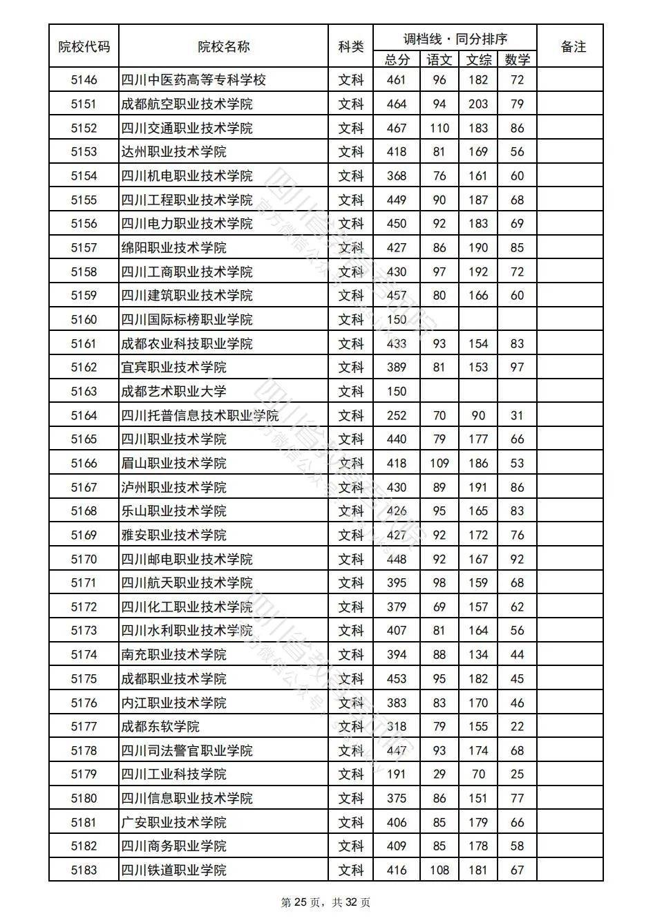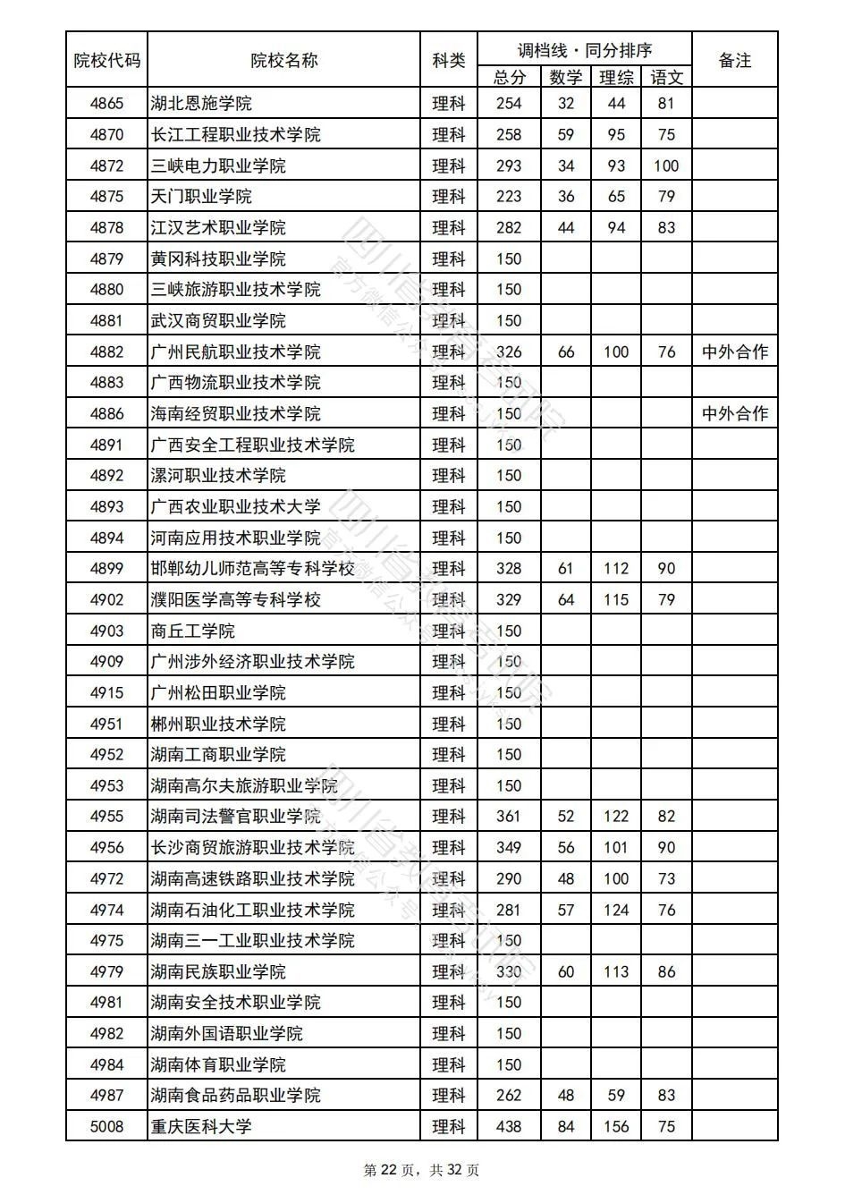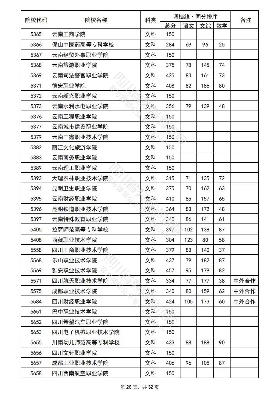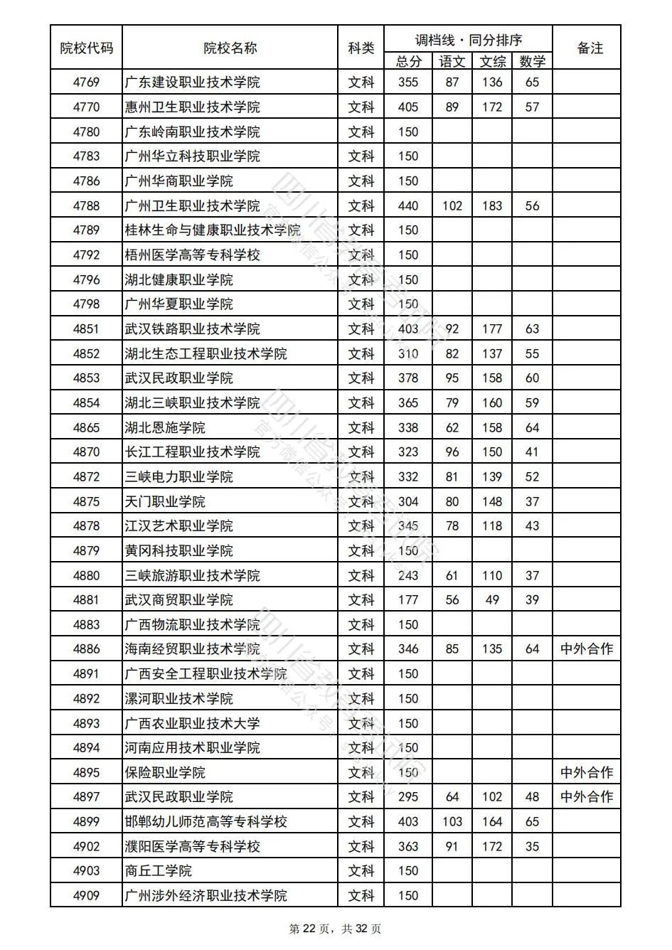 2022年普通高校在川招生专科批院校录取调档线出炉
