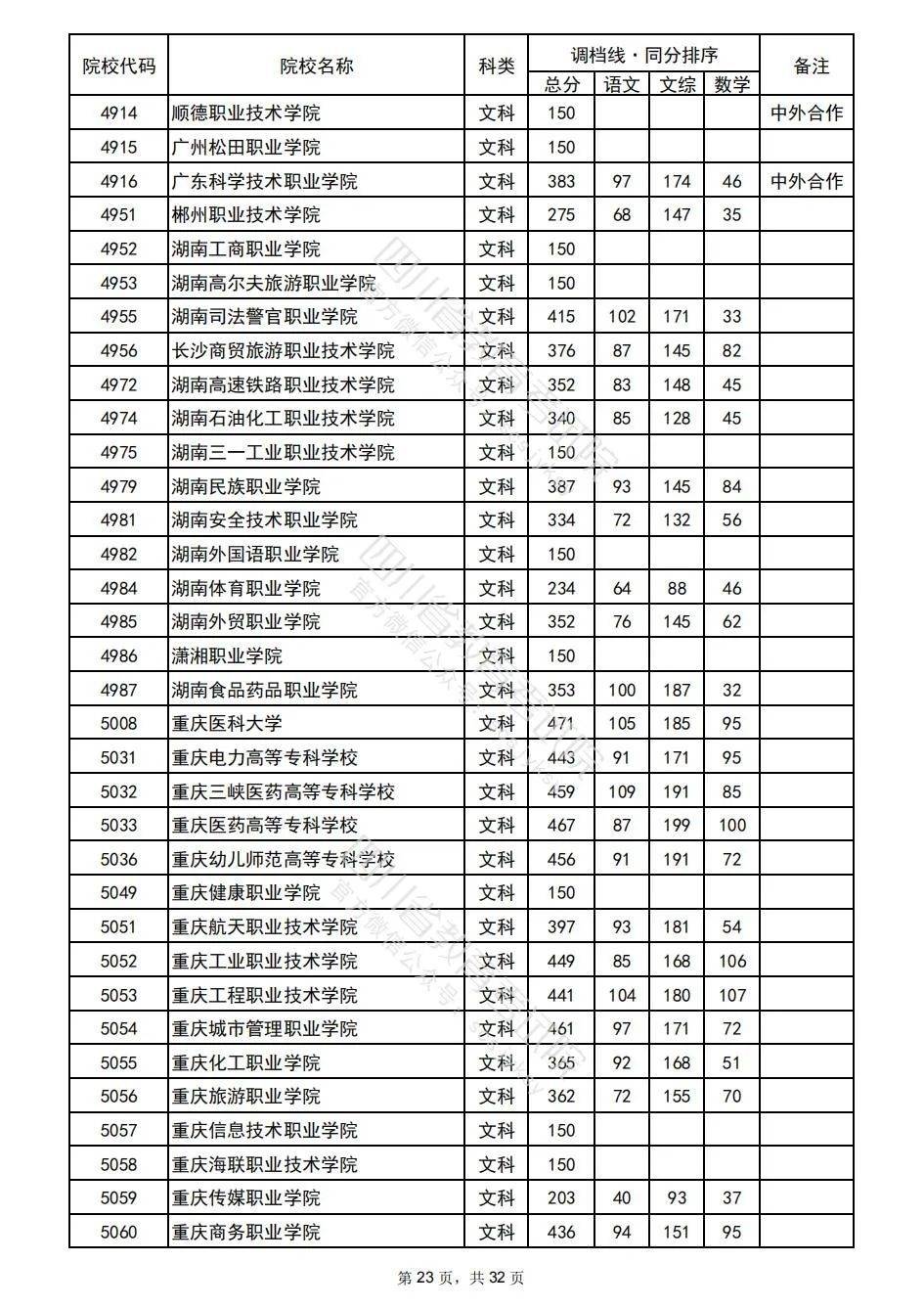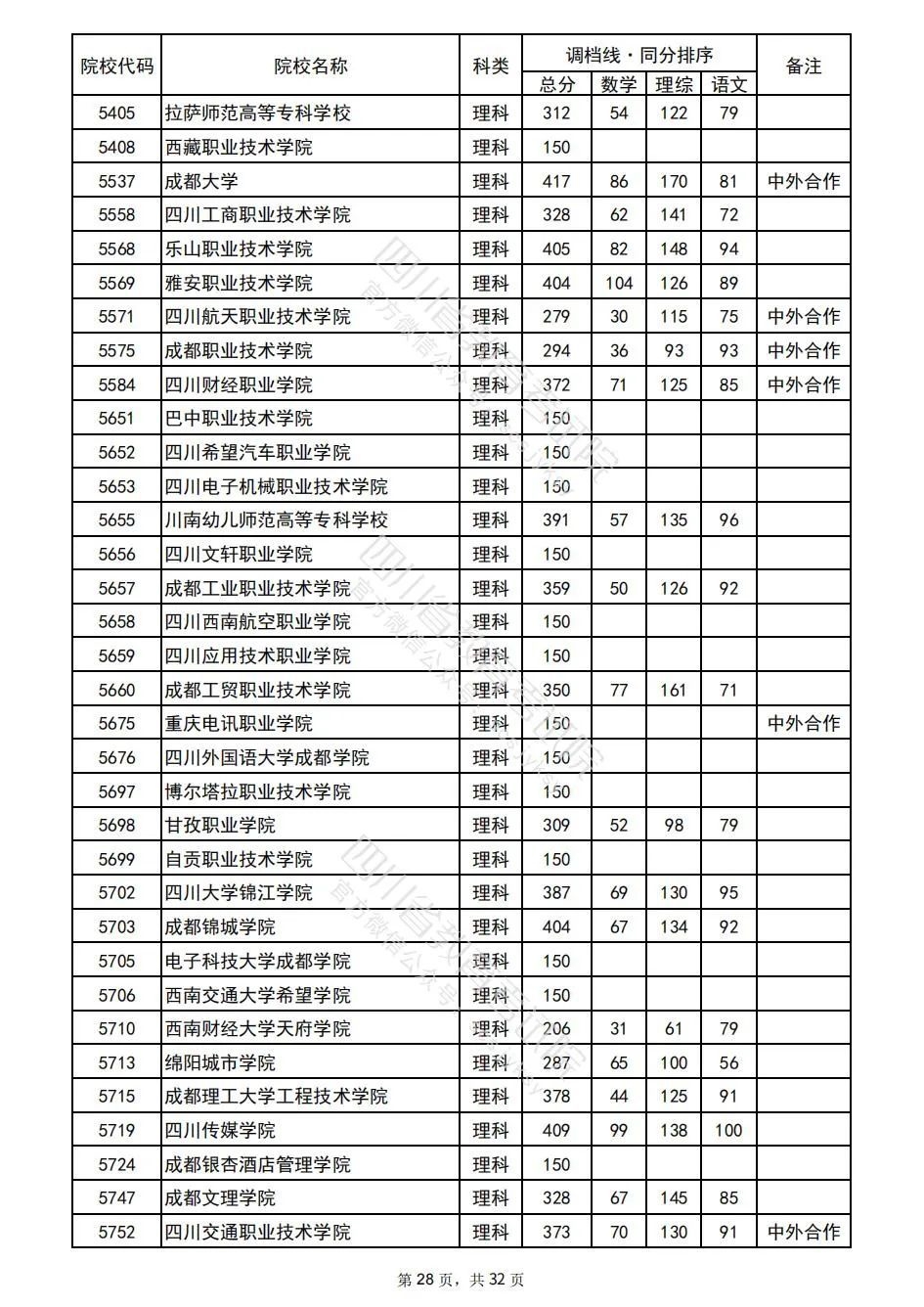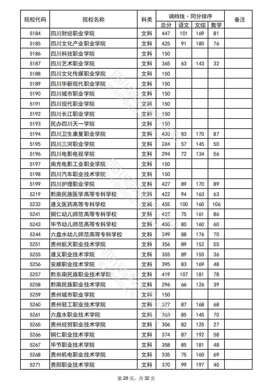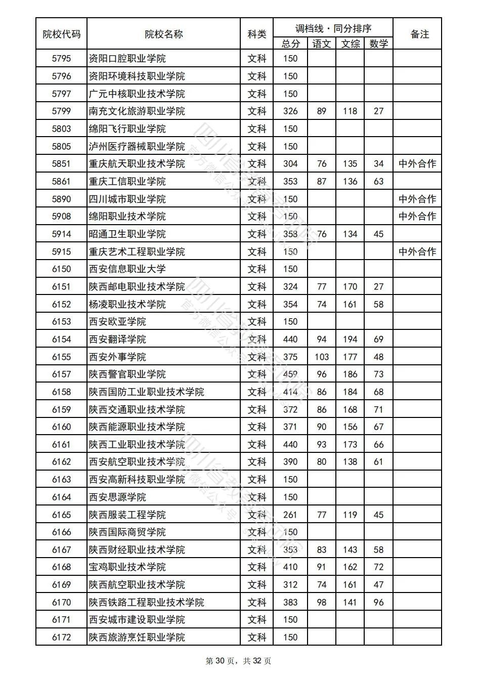 2022年普通高校在川招生专科批院校录取调档线出炉