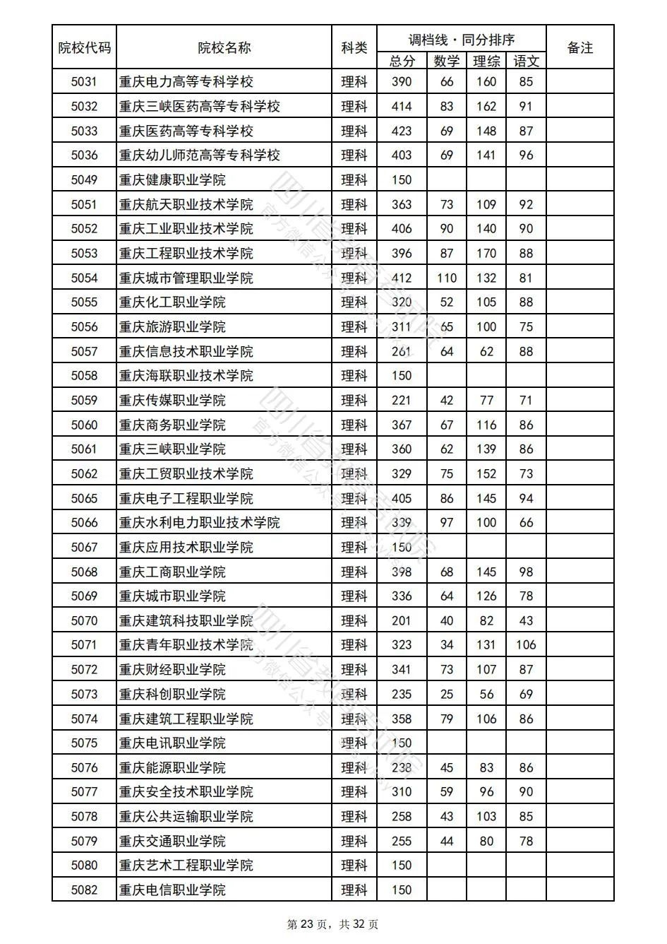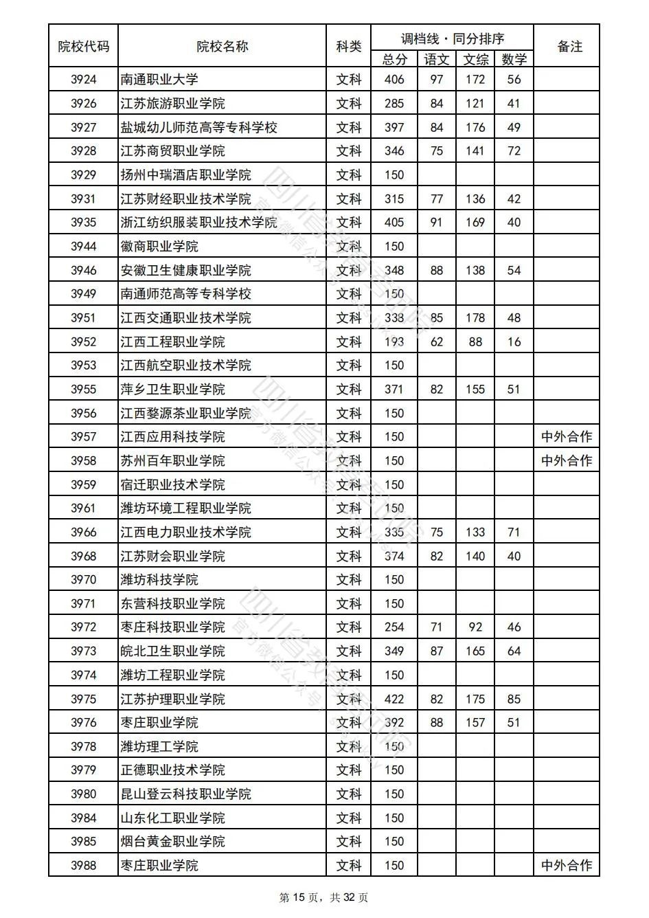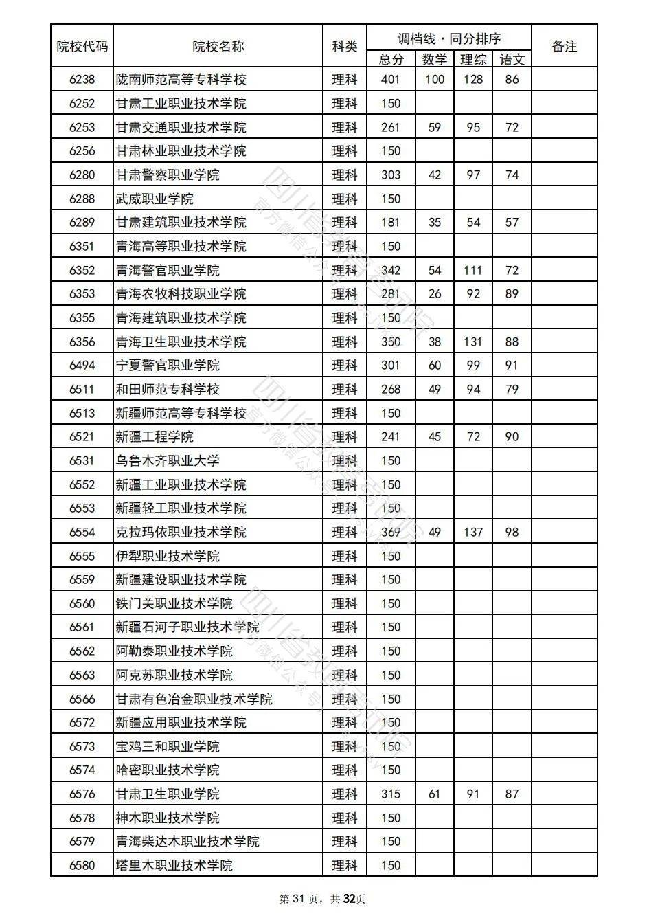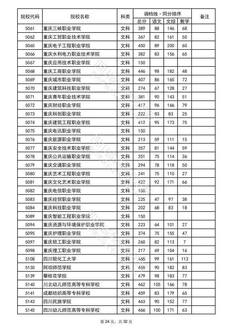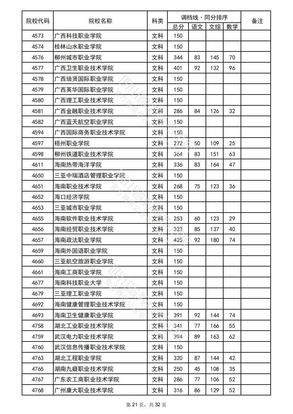 2022年普通高校在川招生专科批院校录取调档线出炉