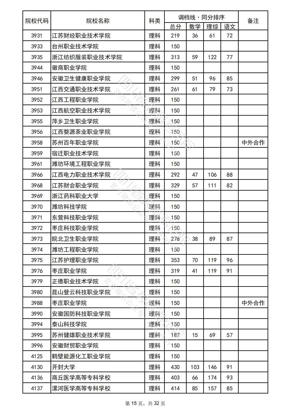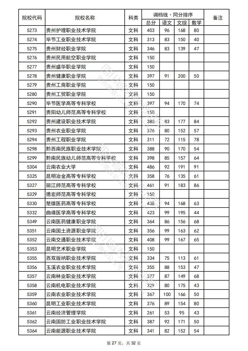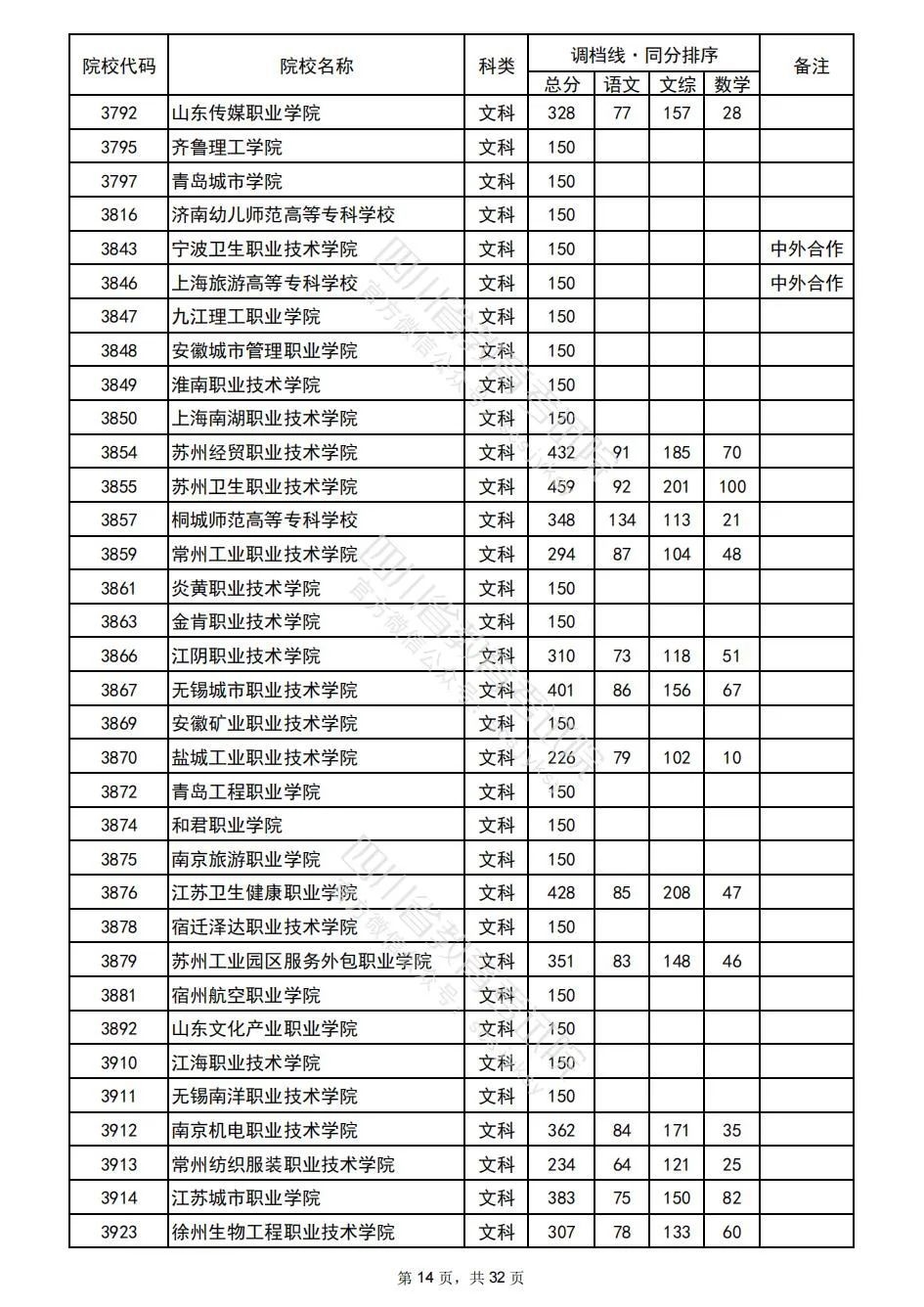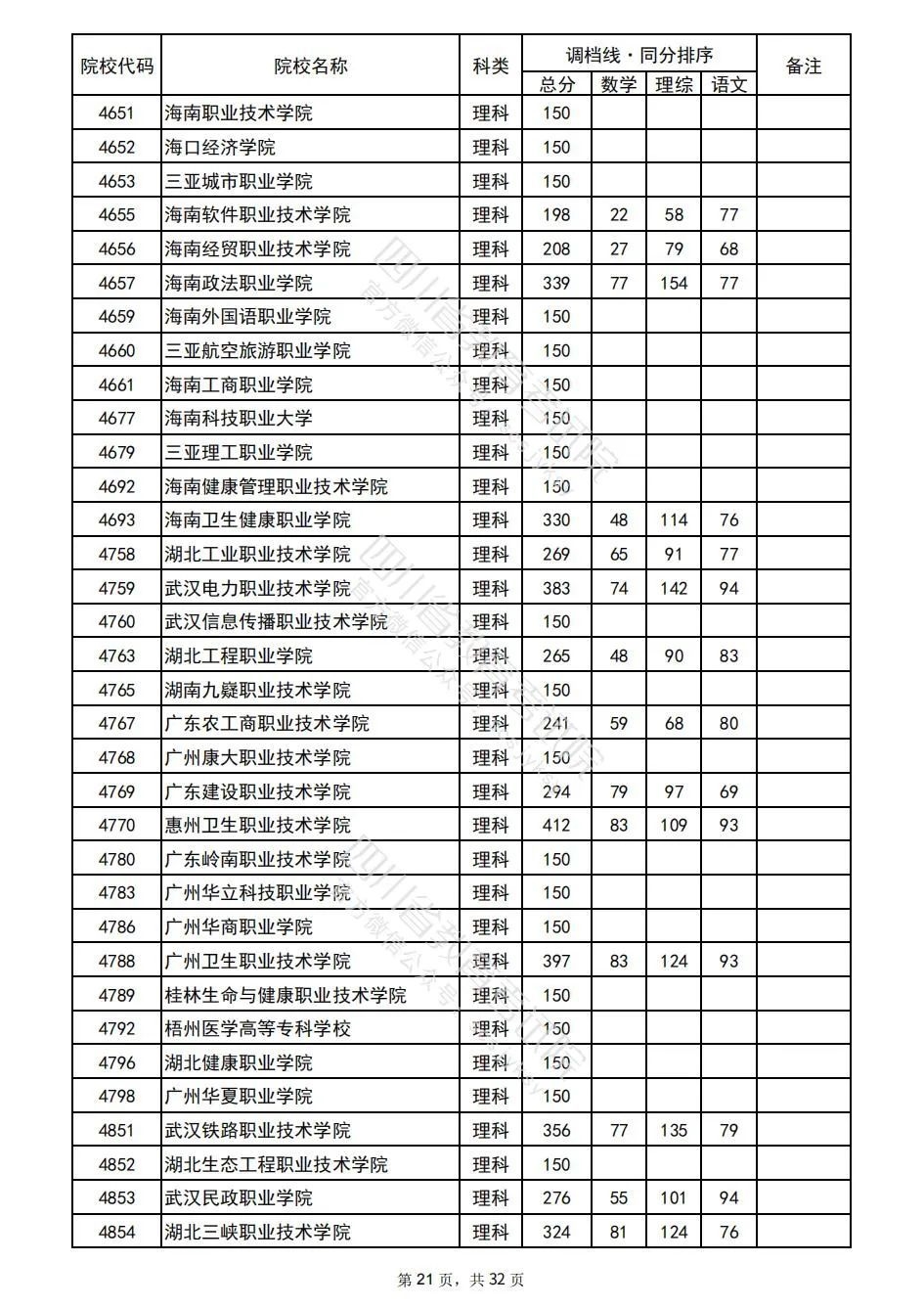 2022年普通高校在川招生专科批院校录取调档线出炉
