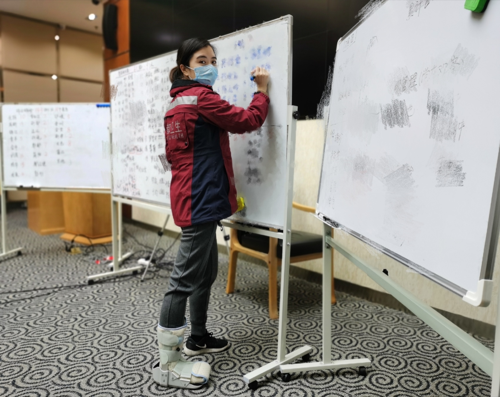 成都市疾病预防控制中心应急与业务管理办公室主任范双凤,是疾控中心综合协调调度的“最强大脑”,串联起了前方调查处置和后方分析决策的桥梁。2020年初新冠肺炎疫情发生后,她不顾足韧带撕裂的腿伤,戴着支具在应急指挥大厅里安了家,牵头负责疾控中心新冠肺炎防控应急组织协调工作,以及每日密接管理、疫情分析汇总和政府疫情通报信息的撰写和报送,后来还承担了新冠应急事件的组织调度和业务统筹工作。