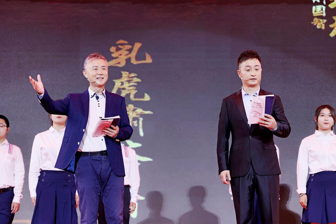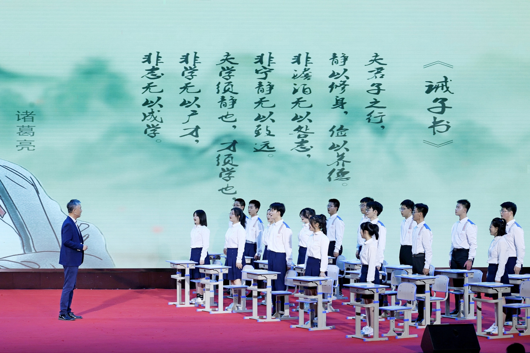 活动分为“修身养德”“知行合一”两大板块呈现。在“修身养德”版块,成都全民阅读推广大使、中国金话筒奖获得者周东在现场观众解读诸葛亮《诫子书》,分享了老课本中的《模范公民》一文,号召大家传承中华优秀传统文化,弘扬社会主义核心价值观。“侍长者行,当随其后;先生训令,宜遵行之……”新都一中的孩子们也通过声情并茂的朗诵《老课本》中的修身国文,将仁爱礼仪融入心底。
