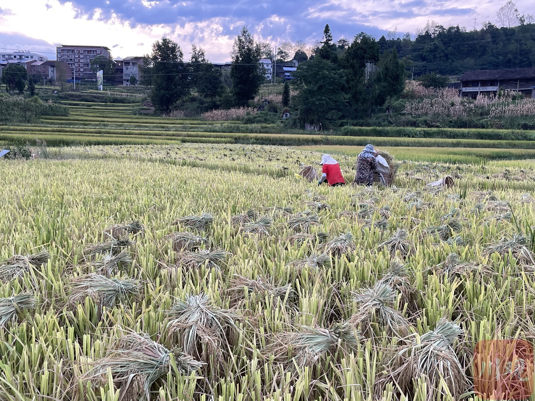 等不来收割机,不少村民选择自己动手。