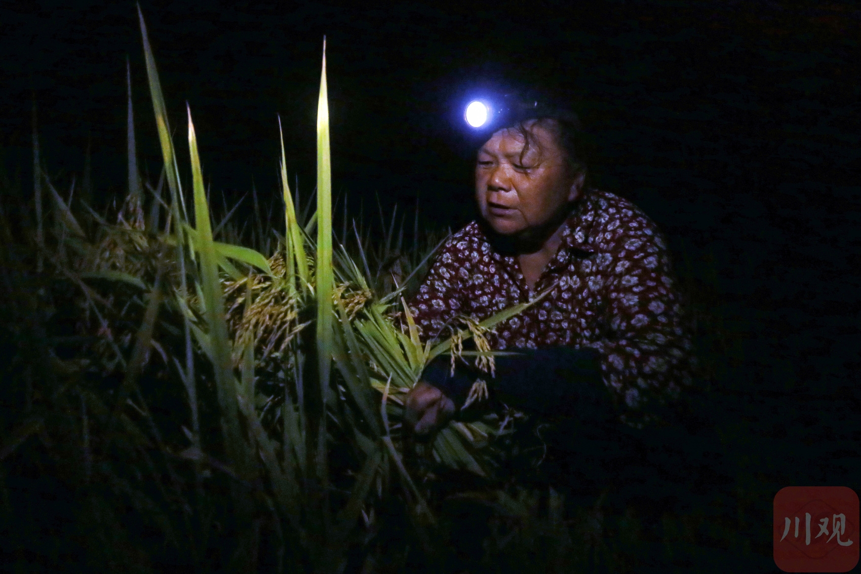 8月19日凌晨,达州市通川区金石镇月岩村,金石梯田被黑夜笼罩,但一场与时间赛跑的硬仗已在自山脊顺坡而下的梯田里打响。