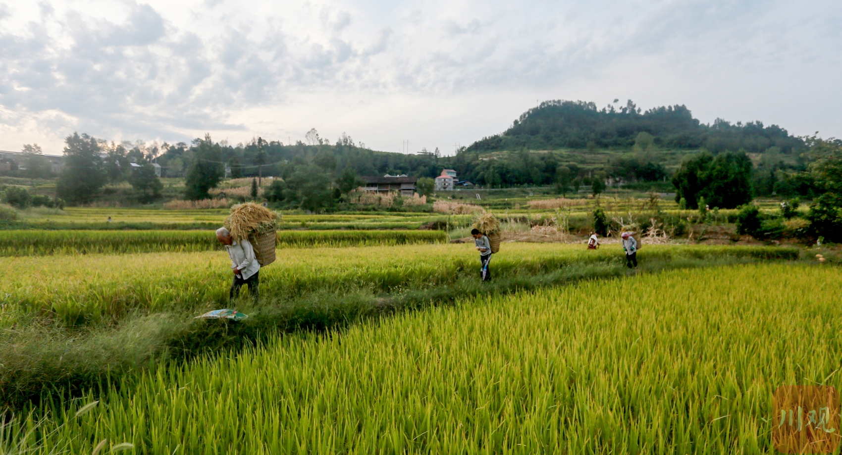 拾稻穗、拉板车,即将开学返校的孙儿和孙女,是村民李仕楼和老伴的田间好帮手。“等孩子们回学校时,都要带上些今年的新米,这也是他们自己的劳动成果。”李仕楼说。