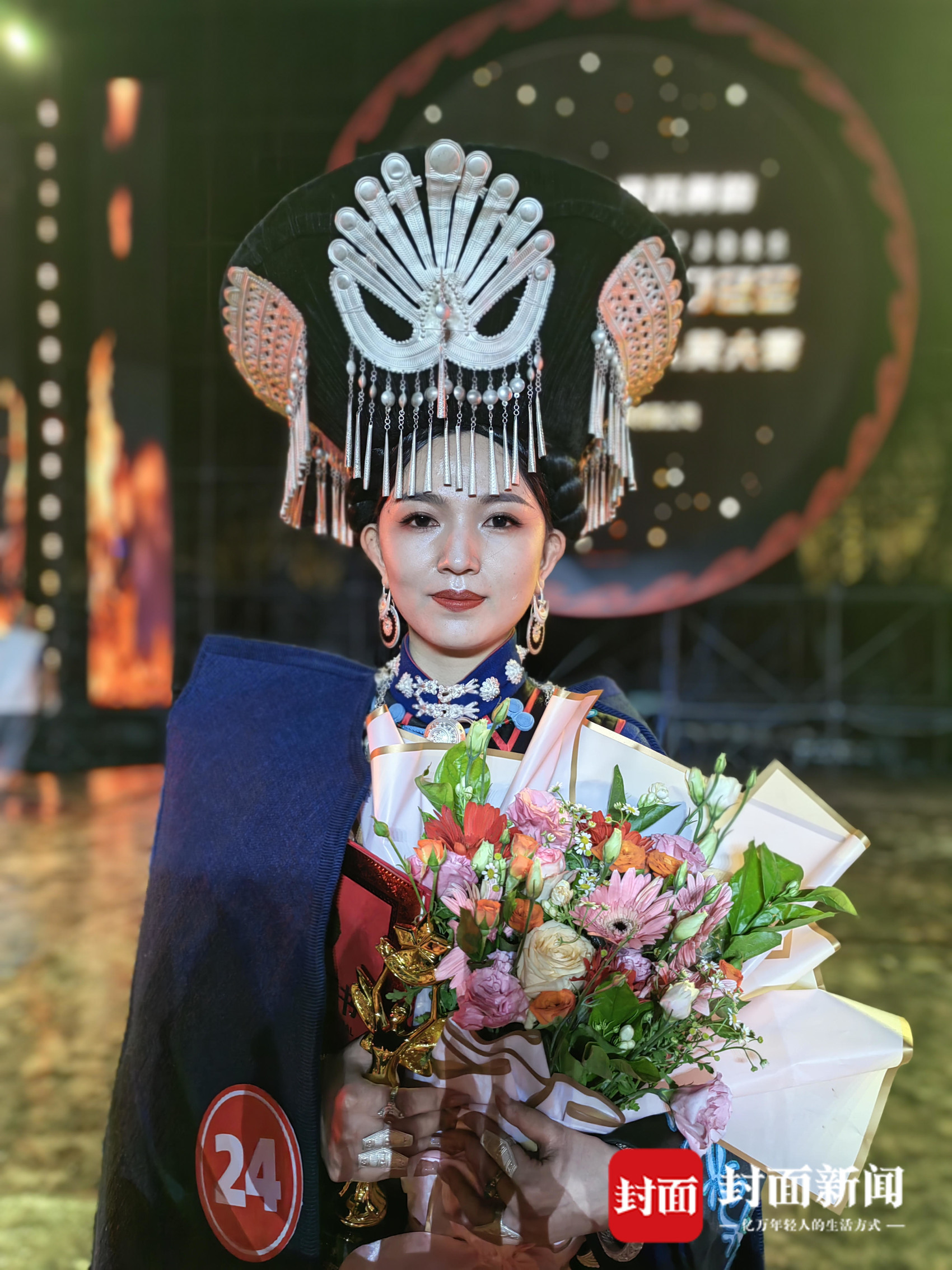 俄木雨星接受封面新闻记者采访时说,她是普格县人,在重庆工商大学读大三。回家过暑假,偶遇这场盛大的选美比赛。她说,她妈妈做的衣服很漂亮,还鼓励她穿上妈妈缝制的衣服参赛。一路走来,她层层闯关,走到了最后。学广播电视专业的她希望大学毕业后回到家乡,为宣传家乡贡献一份力量。