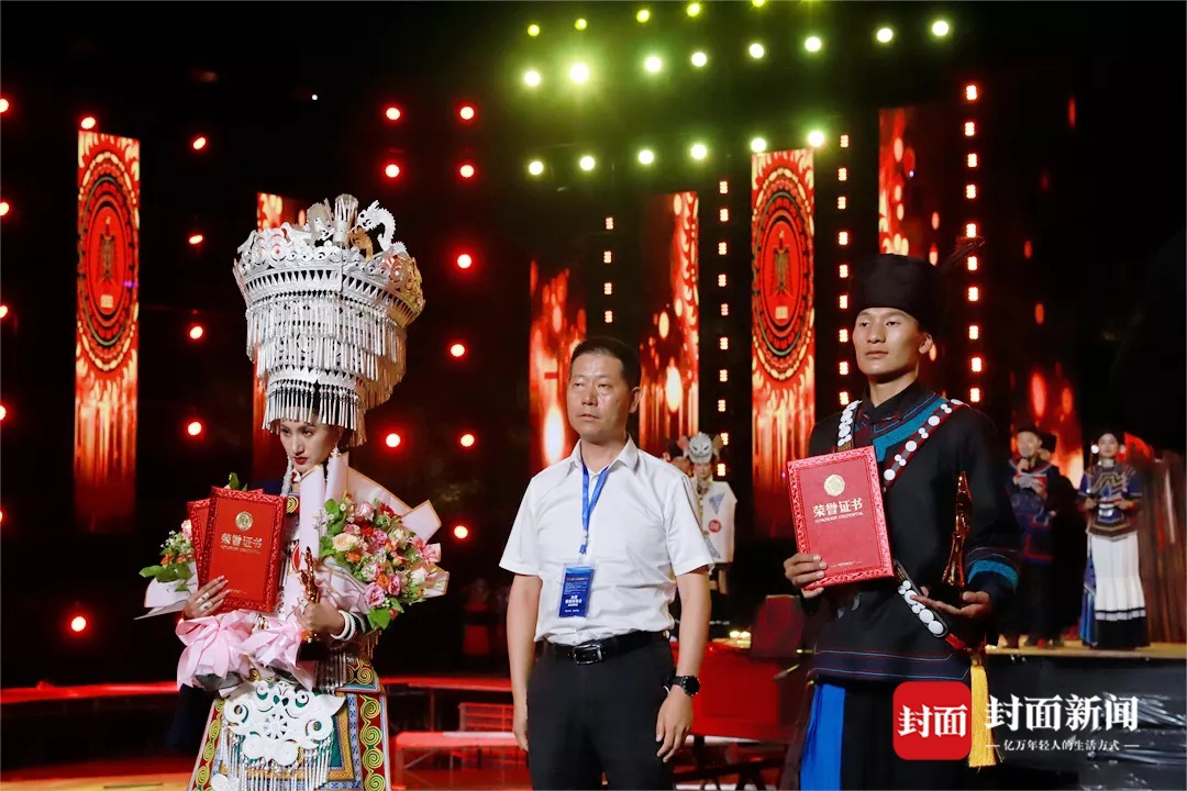 站在舞台中央,他们展示着自己的民族服饰和才艺。有姑娘顶着满身的银饰,叮叮当当地秀出来;有小伙炫起了非遗口弦;有人现场泼墨画画,有人当场挥毫彝文书法;有人引颈高歌,有人尽情舞蹈……