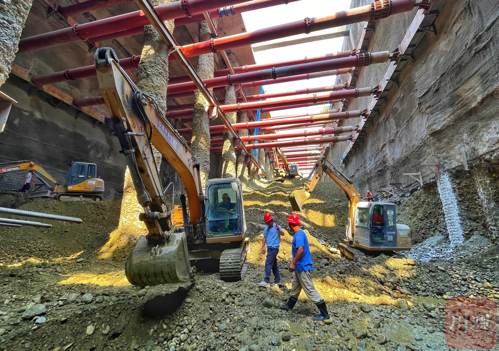 8月19日,连日高温,酷暑难耐,在成轨地铁13号线上,光华村站、杜甫草堂站两个站点的工人们正顶着36摄氏度的高温,按照各自站点的施工进度完成钢筋绑扎、基坑出土等工作。