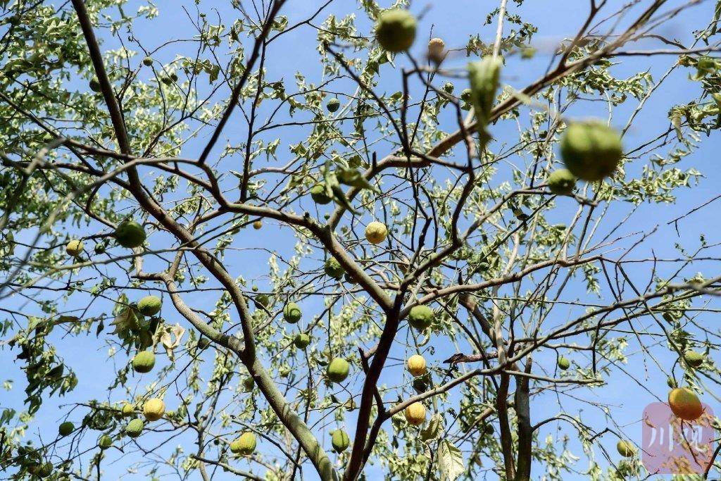 8月18日,广安市华蓥市高兴镇柠檬种植基地里的柠檬因高温干旱天气已经枯萎。