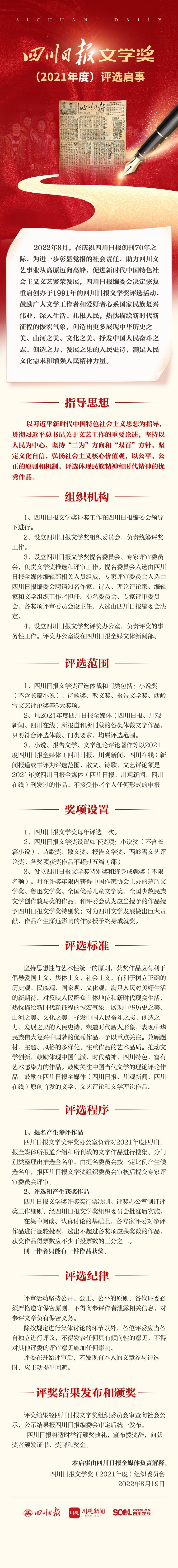 四川日报文学奖(2021年度)评选启事