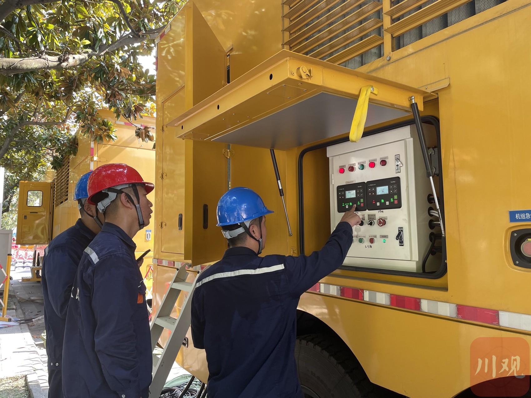 抵达后,37位队员立即分两组投入保电,将应急发电车接入环网柜,并入温江主网运行,极大缓解温江区10千伏长光线和110千伏长安桥变电站重载问题,加固民生保电底线。