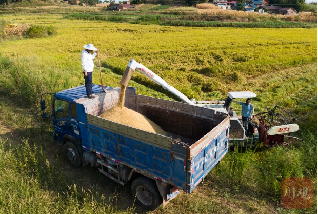 内江市资中县公民镇,卡车正在装运收获的稻谷 唐广 摄