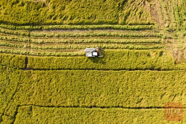 “抢收水稻的高效率,离不开宜机化政策改造的助力。这里原本的坡地经过改造后更加平整,适合机械化作业。”易小杰跳到田埂上,指着不远处介绍。只见对面一层层的稻田在坡地上方向下延伸,形成了大片的梯田。
