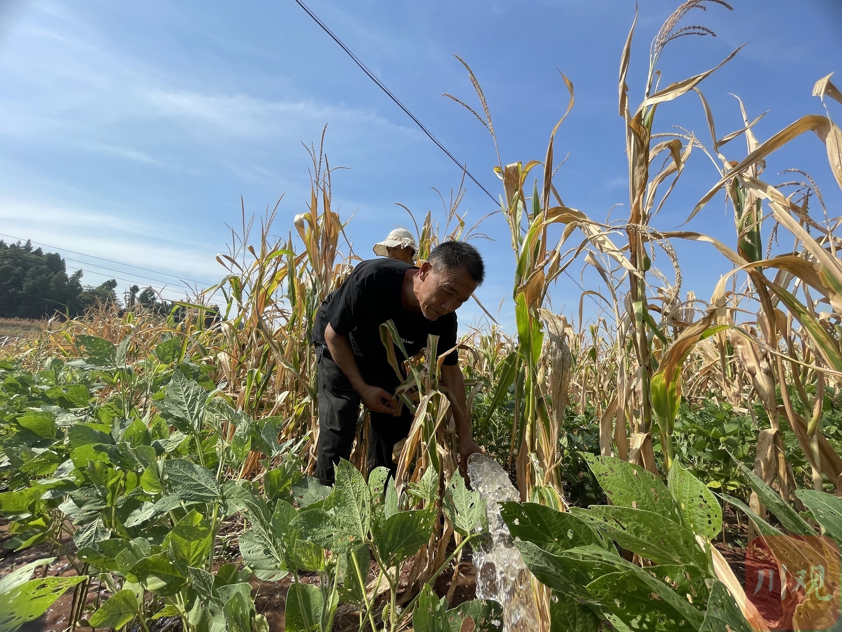 “水来啦!”8月23日上午6时,天刚刚亮,一声吆喝打破了资阳市乐至县劳动镇双龙村的宁静,一场给大豆解渴的“抢灌战”打响了。