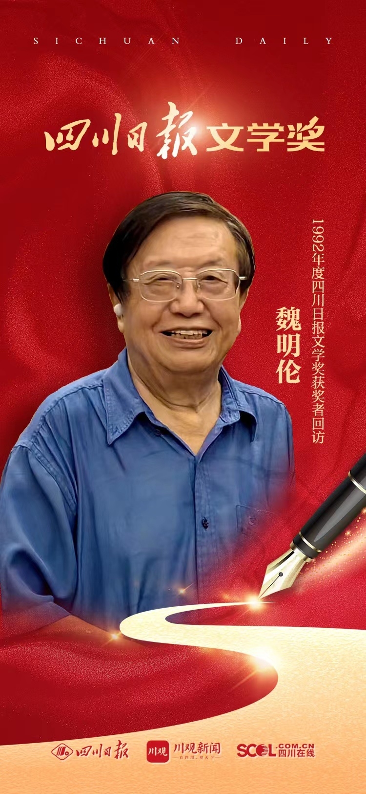 8月23日,年过八旬的著名剧作家魏明伦在成都家中,听闻四川日报恢复重启“四川日报文学奖”,在表示祝贺的同时,立马回忆起自己一篇名为《新诗审美嬗变说》的文章曾获得第三届四川日报文学奖。