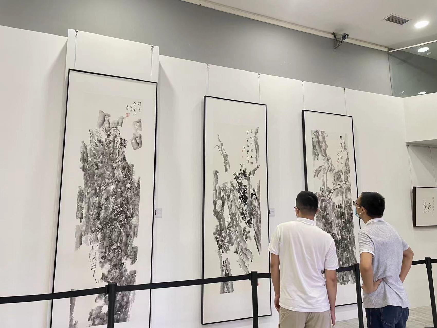刘云泉表示,此次展览取名“古柏吟”,呼应着杜甫咏物怀古,称颂刘备与诸葛亮君臣际会的七言古诗《古柏行》,同时也点明了此次展览的地点。本次展出的40幅书画作品中,既有八尺大作,也有盈尺小品。展出作品意在以书情入画,以画意渗书,着力展现独到笔墨,既有传统根基,又具有一定当代性。