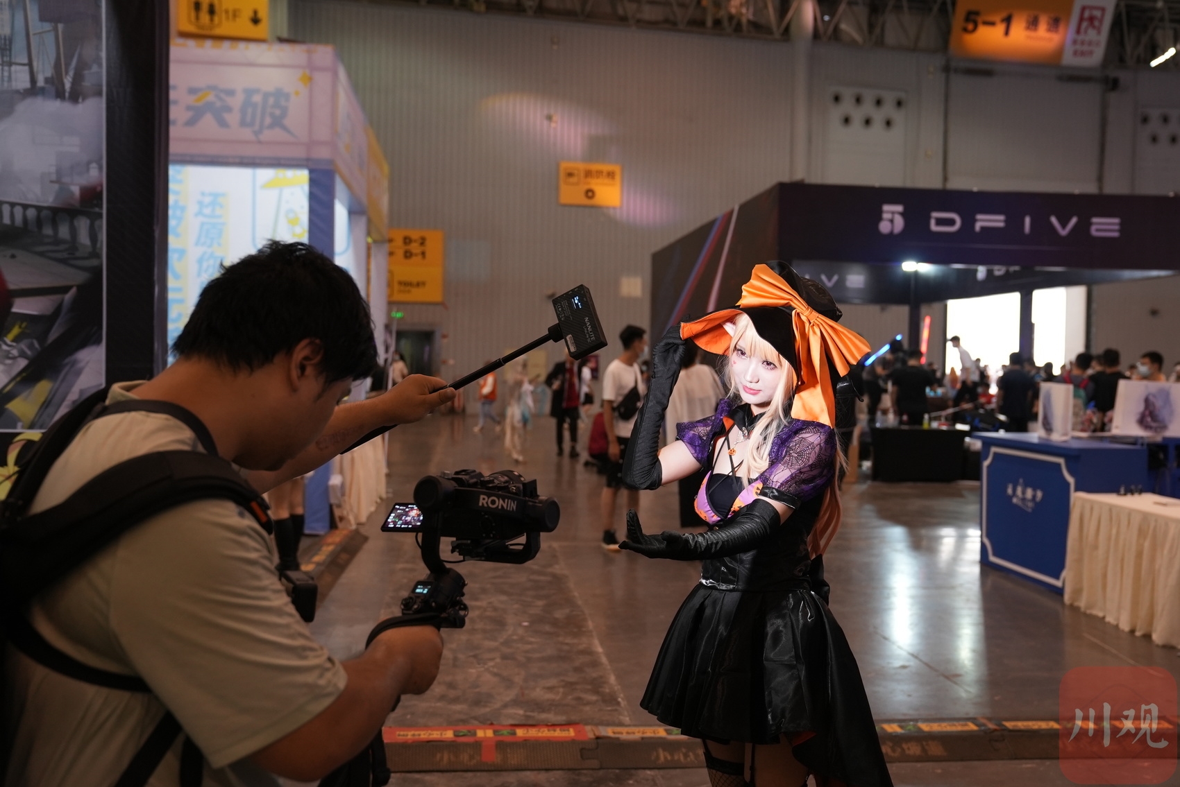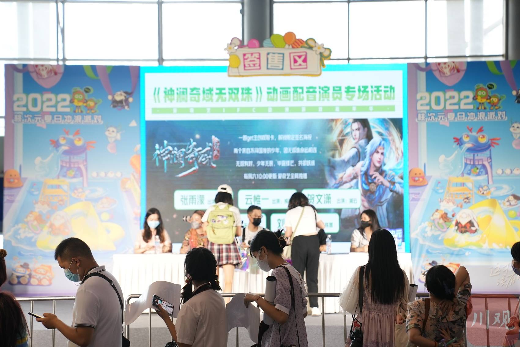四川在线记者在现场发现,参展观众几乎人手一本小册子,根据小册子上的区域分布示意图,可以前往各展位集戳盖章、参与活动、领取奖励;不少展位还有互动舞台节目,打扮成游戏人物的主持人通过互动与台下观众迅速打成一片;除此之外,人气最旺的还有宅舞表演、游戏竞技舞台区和配音演员、人气作家、人气漫画家等嘉宾的签售互动区。