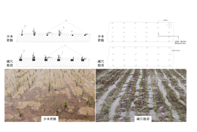 减穴稳苗(右)与常规密植(左)栽后效果图(邓飞供图)
