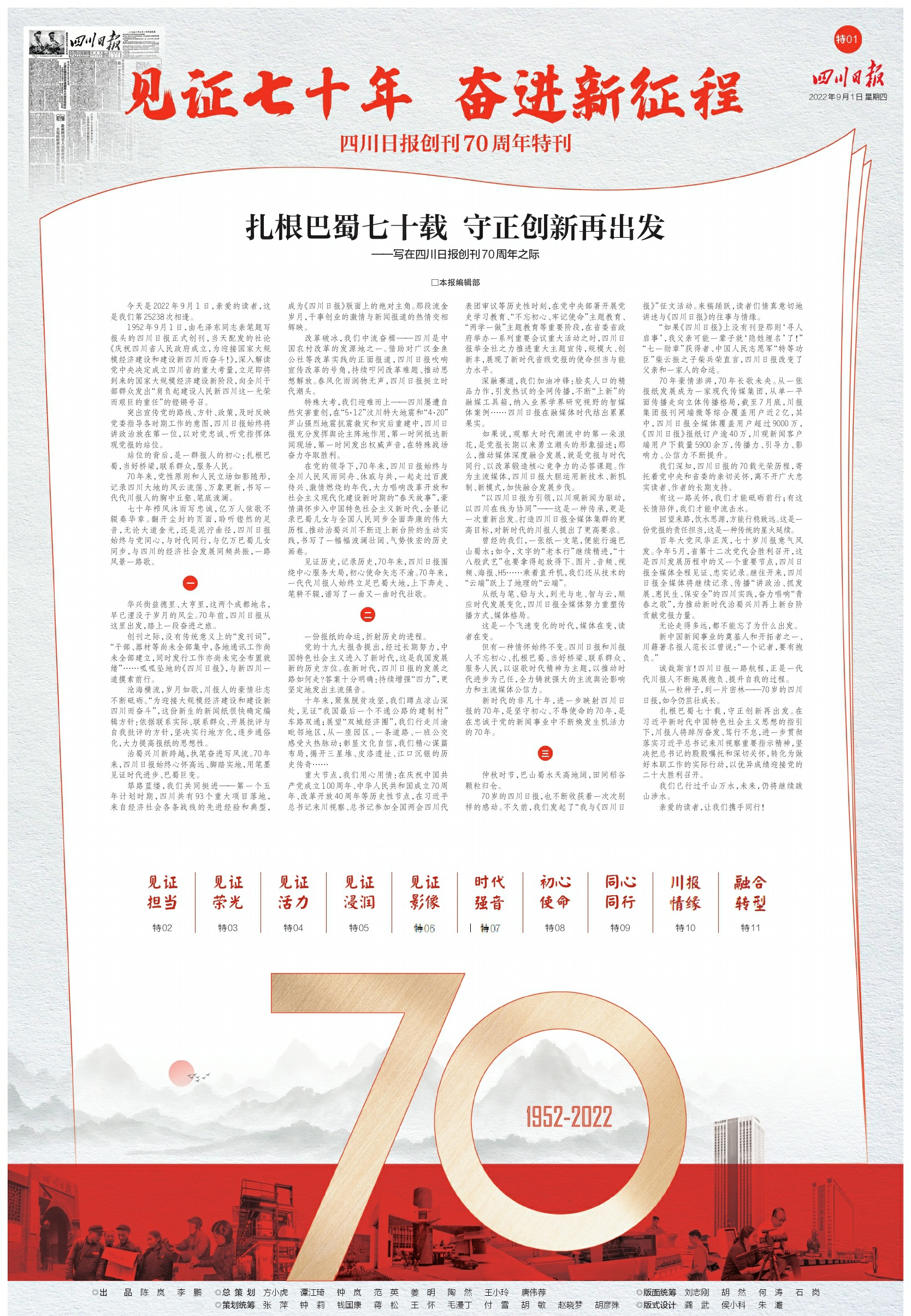 70年来,党性原则和人民立场如影随形,记录四川大地的风云流荡、万象更新,书写一代代川报人的胸中丘壑、笔底波澜。