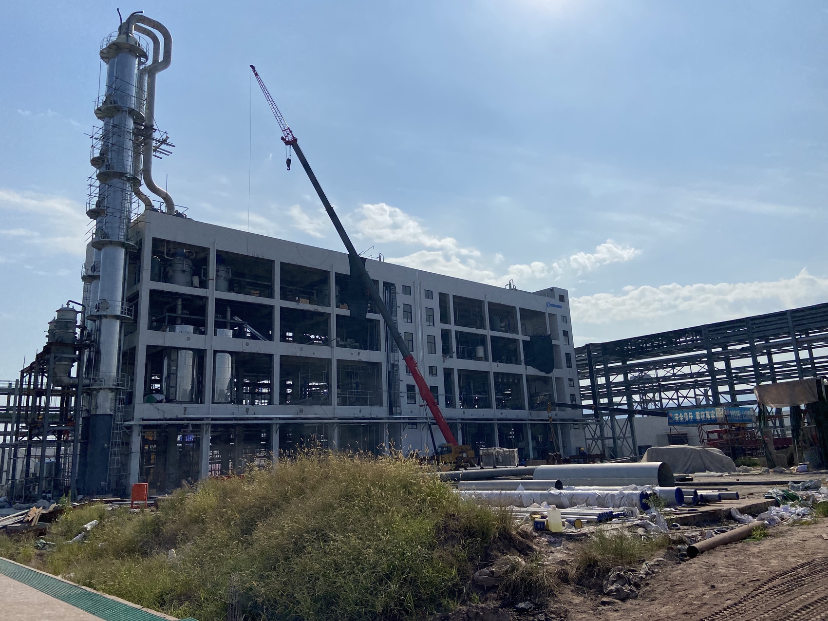 四川圣效有机化学品原料建设项目主体设备已全部就位,进入工艺管道的安装扫尾工作。邓涵予 摄