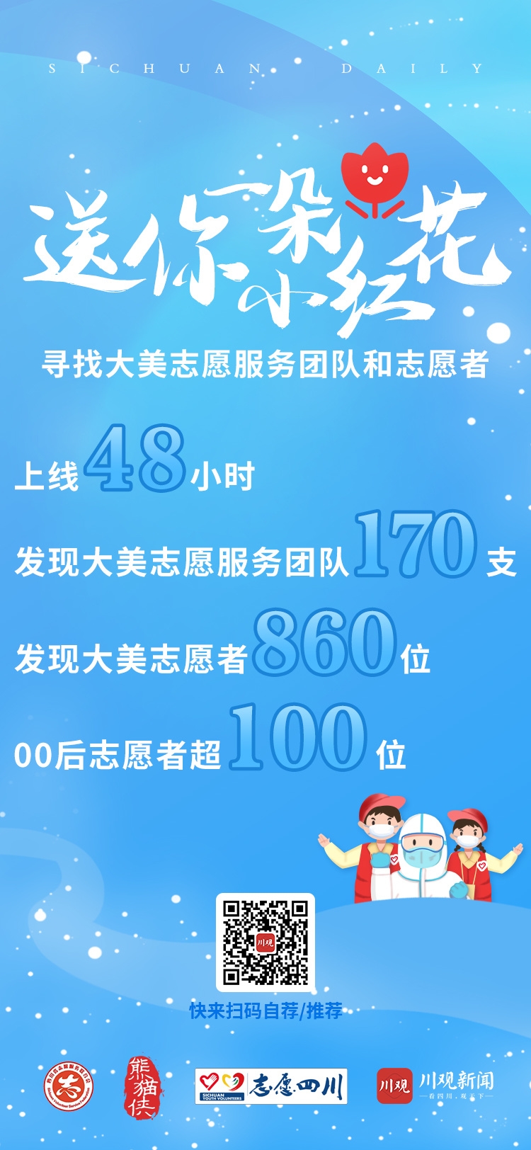 后续,川观新闻还会不断推出“身边的大美抗疫志愿服务团队和志愿者”,如果你身边也有这样的志愿服务团队和志愿者,你也想送出小红花,快来点击下图海报参与吧!