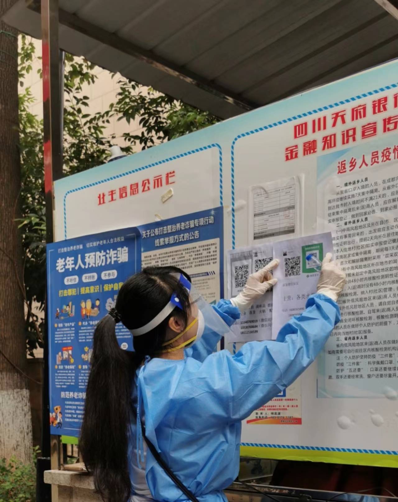 消防员在核酸检测点协助验证信息。四川消防供图