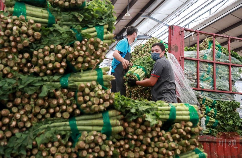 9月1日,保供人员正在四川国际农产品交易中心卸载蔬菜。该中心积极对接产地,加强货源组织,保障供应。