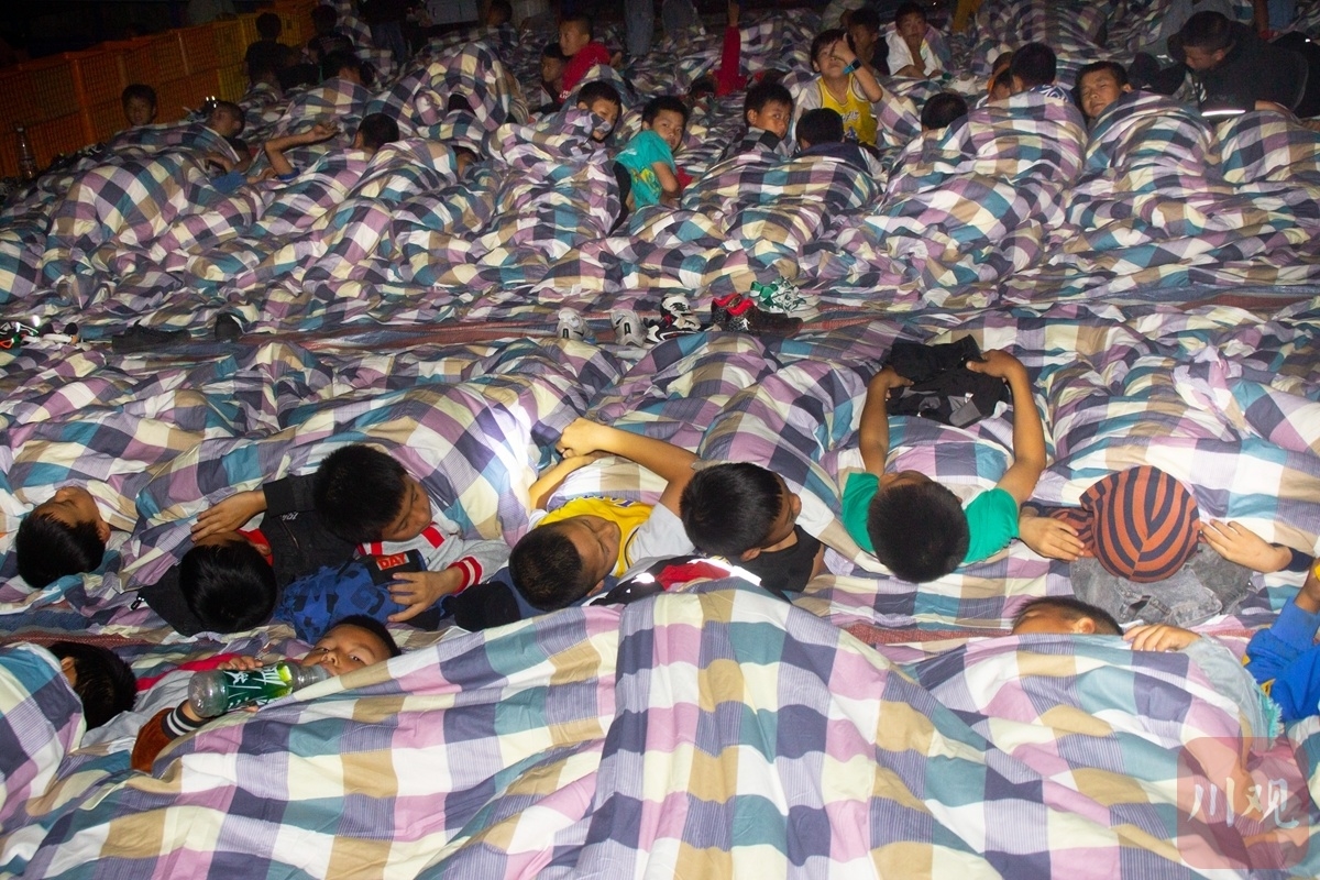 9月5日晚10点,石棉县新民藏族彝族乡(以下简称新民乡)气温已降到15℃以下,不少村民裹上了外衣。农乡村选果场内,近300名新民小学学生躺在一个“大通铺”上,逐渐进入梦乡。