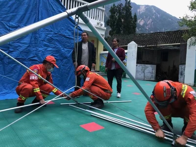 截至9月6日18时30分,队伍在草科乡开设直升机机降场地,转运伤员13人,其中重伤员3人,轻伤员10人,搬运保障物资108箱、救灾帐篷300顶、折叠床64张,搭建救灾帐篷10顶。