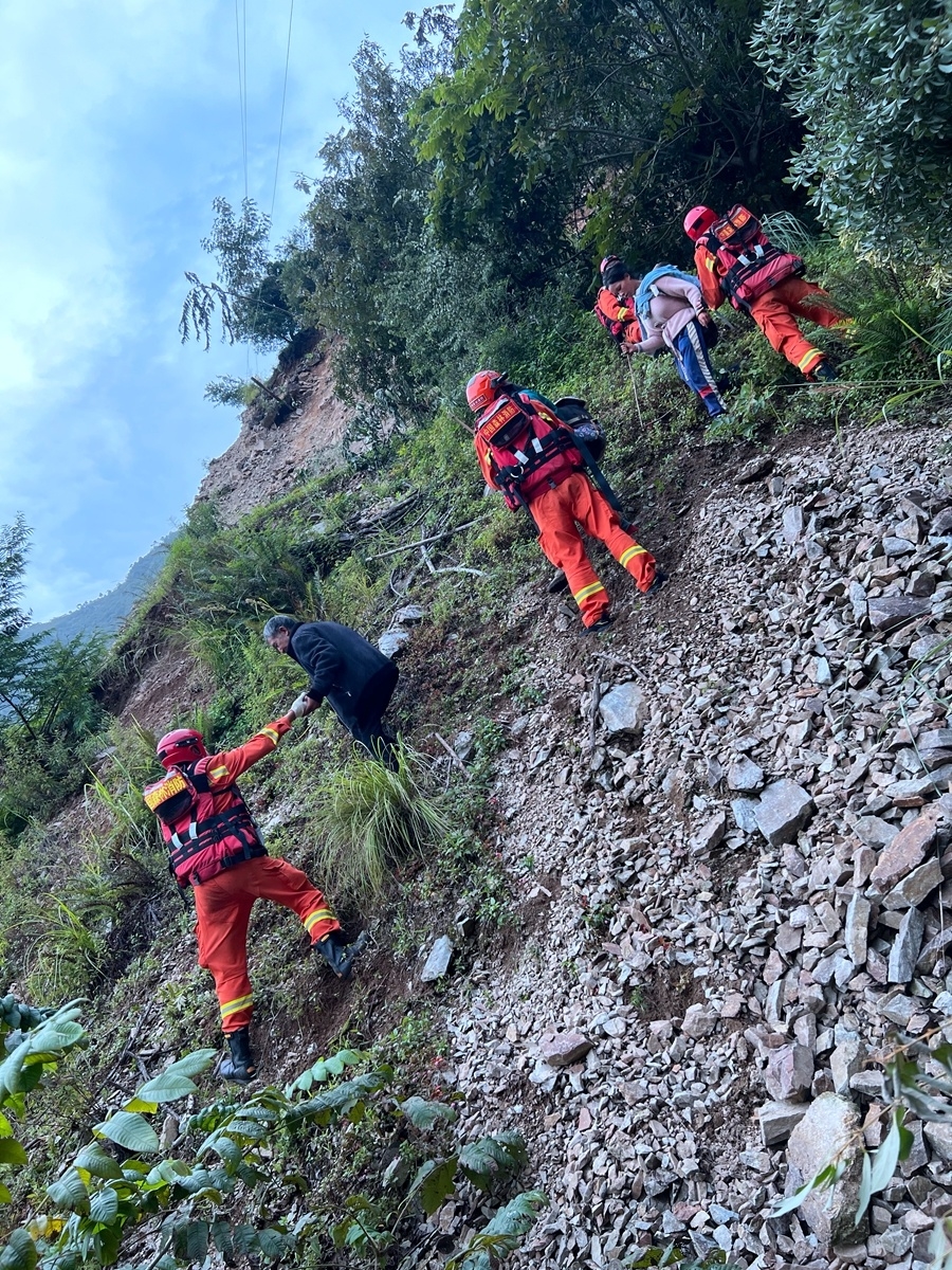 分队找到被困人员后,在转运过程中,一老人因地震时受伤,丧失了行动能力,森林消防队员们只能在陡峭的山体上,利用担架抬;在遇有山体塌方受阻、路况不好时,森林消防队员们轮流背;在下悬崖山体时,森林消防员们利用绳索救援技术先把队员下放至悬崖中部、底部进行接应,再由队员带受困群众进行下降,护送至大渡河岸边,由等待中的橡皮艇快速将被困群众转移至安全地带,并移交给岸边等待的医护人员进行医治。截至9月7日中午,31名被困群众已全部安全转移。