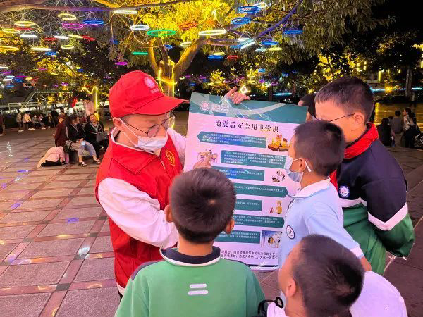 地震发生后,国网石棉县供电公司张家虎在世纪广场避难点开展震后安全用电常识宣传,就如何预防电器火灾、防触电、防漏电等安全用电常识对群众进行宣传,增强群众的安全用电意识。