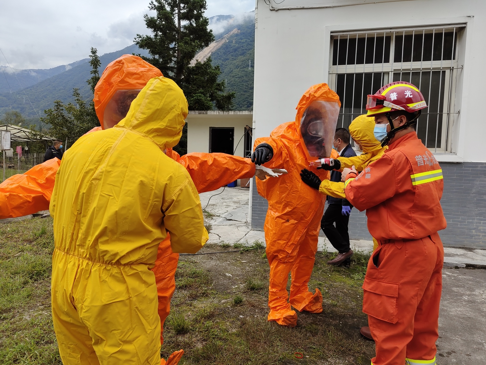 9月7日凌晨3时5分,中国石化中原油田普光应急救援队危化品抢险分队派出专业人员,携带防爆照明灯具,前往泸定县震中区域某受损危化品科研场所踏勘。