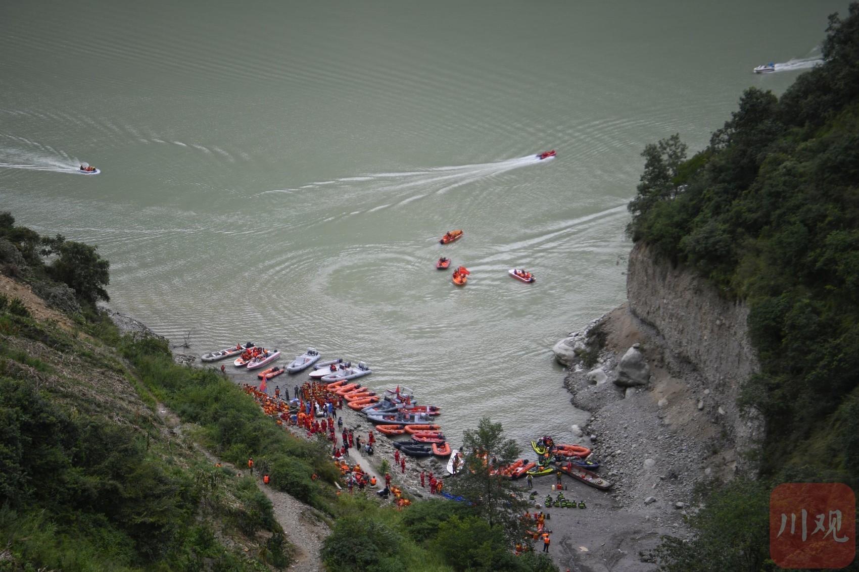 9月7日15时30分,泸定县得妥镇洛进沟大桥下,四艘橡皮艇相继靠岸,至此,紫雅场村所有受灾群众安全转移。