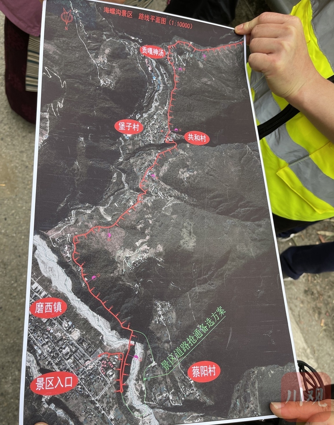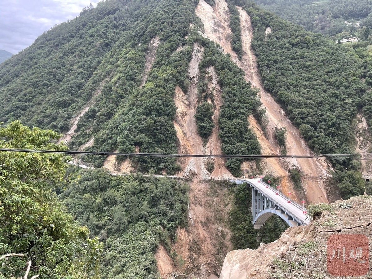 在安置点呆了2晚,爷爷他们带的药也快吃完了。今天,消防又进来,把我们一家都带出去。走在路上,我才看到,好多地方都垮了,有两三段连路基都没了。断道的地方,消防拉了救援绳索,看到细,但很结实。山体坡度大概30度,我们踩着山体,拉着绳索,就能过去了。消防把我们一个接一个护送过去,我儿子是被他们背过来的。