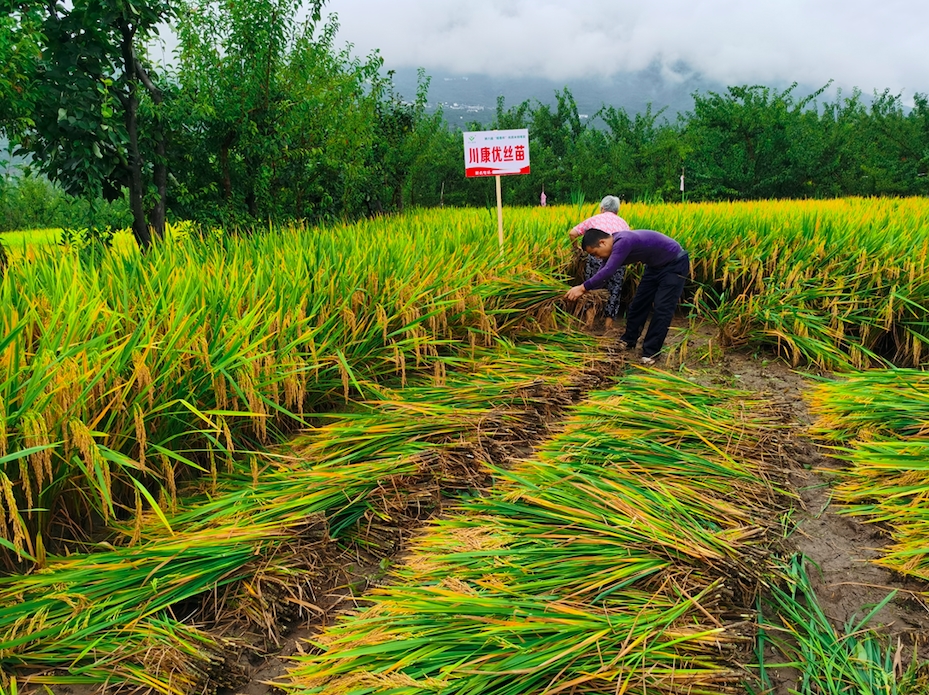 “川康优丝苗”测产现场。省农科院供图