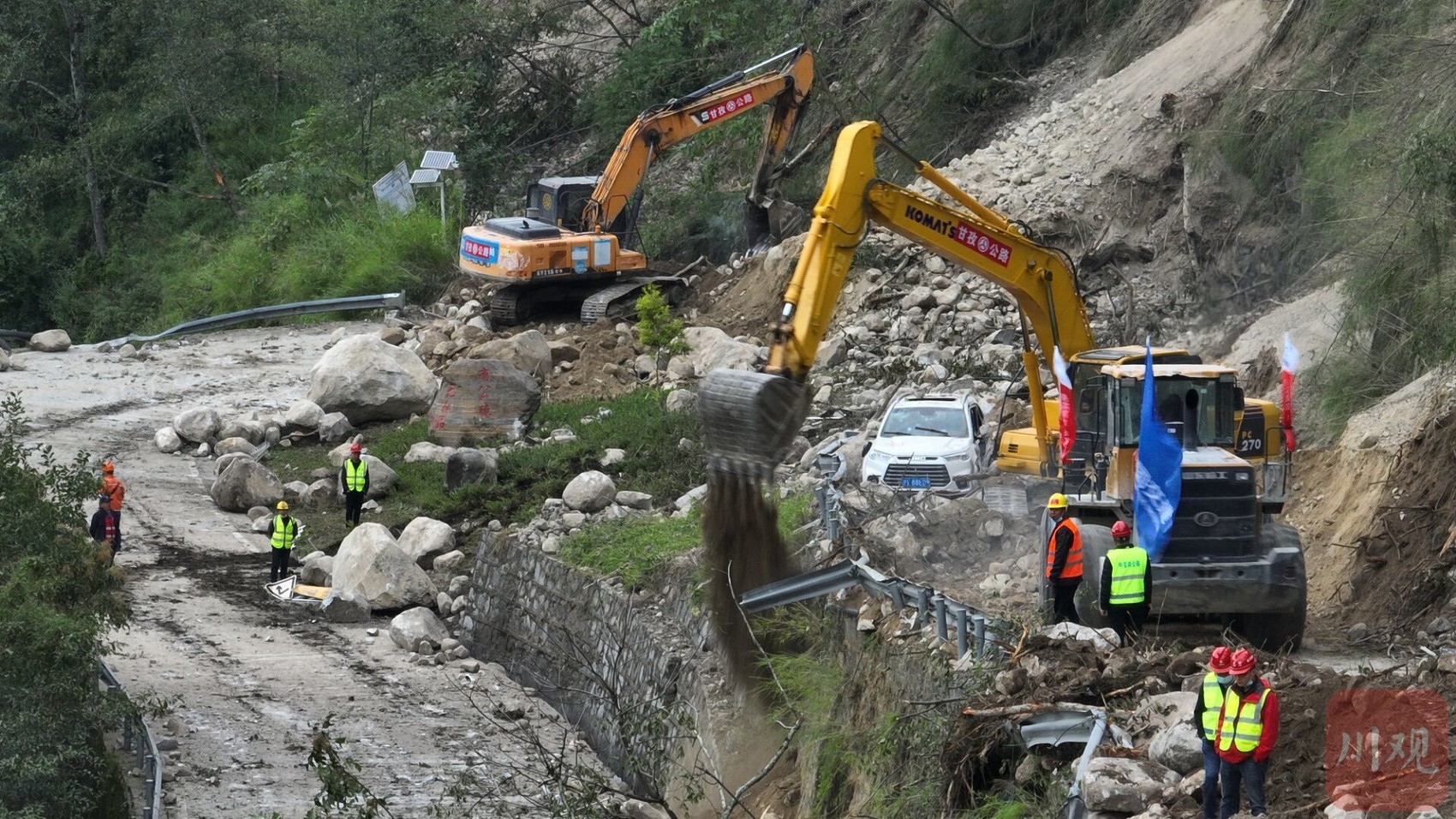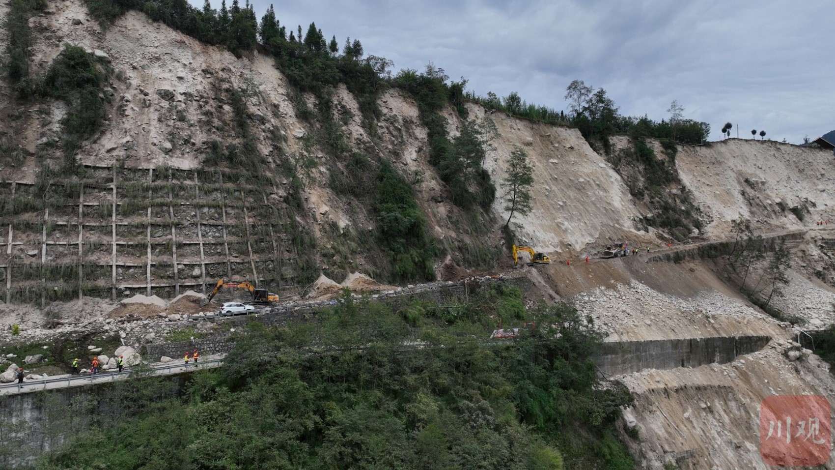 可现在的X019线,很难称之为“路”。蜀道集团现场抢险负责人杨建平记得,9月6日一早,大家来到现场,就被眼前的一幕惊呆了:沿山而建的公路,从山顶弯到山腰,仿佛折成了几层,挂在山壁上;公路的绝大部分已被塌方体掩埋,山壁变绝壁,哪里还有路!