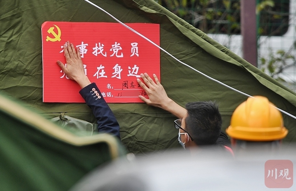 在甘孜州泸定县磨西镇贡嘎广场的核酸检测点旁,记者还发现帐篷上贴着“有事找党员 党员在身边”的红色标牌,上面还留有党员的名字和电话。“第一时间为群众做好服务。”