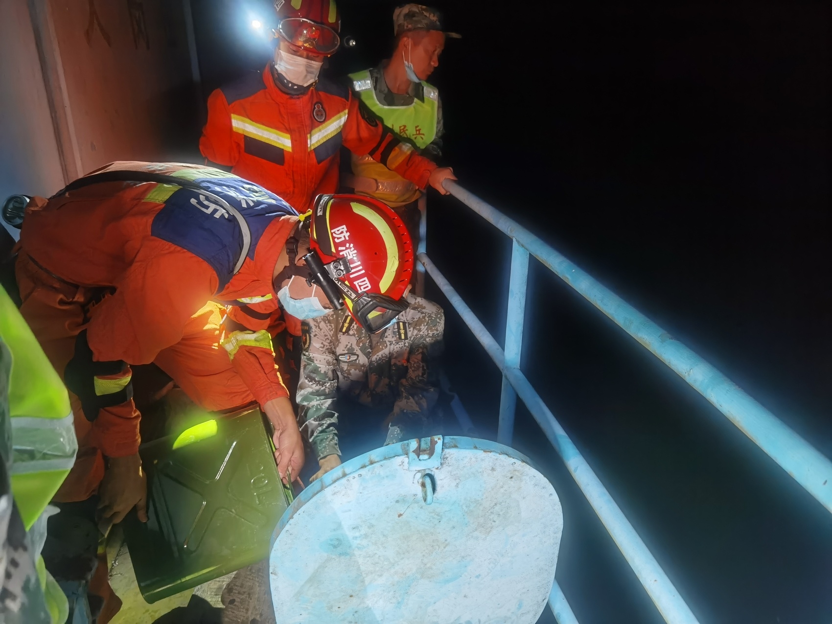 “时间就是生命,明早天一亮,里面停靠的救援队伍就要开始往外转移群众,拖不得!”前线指挥部决定,每人拿一支手电筒,将柴油连夜送进去。