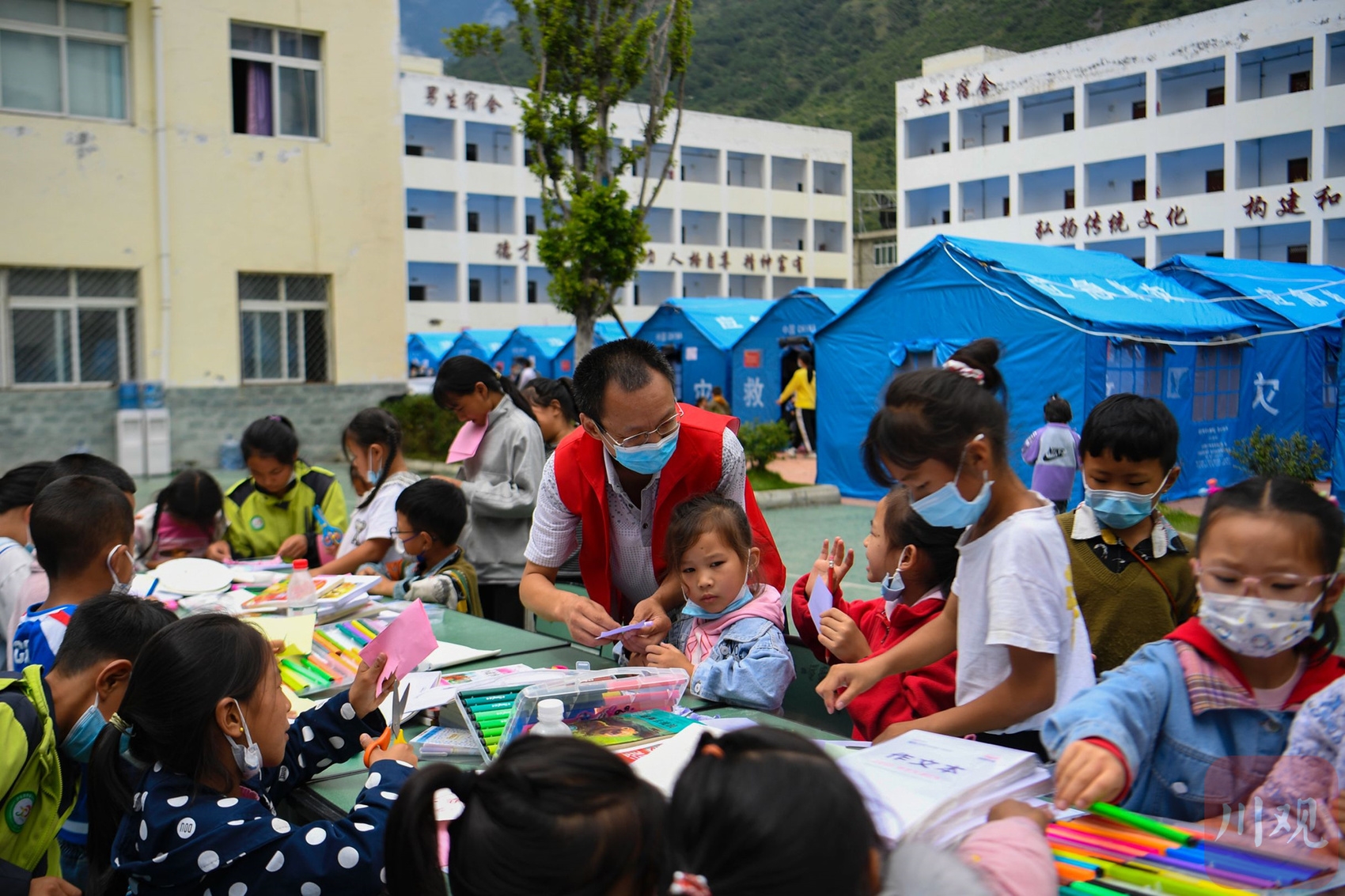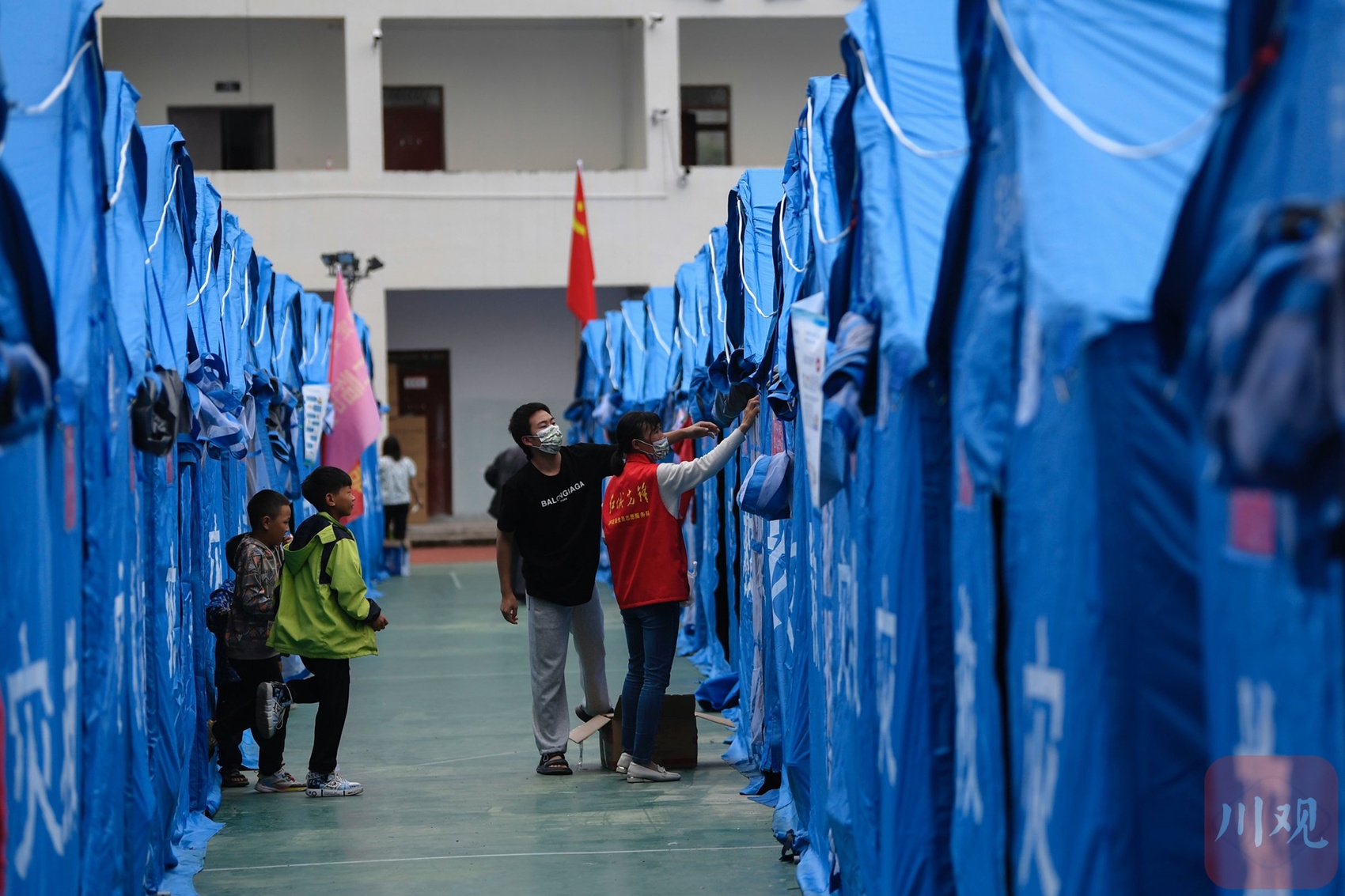 泸定二中整个操场上搭建了140余顶帐篷,是该县最大的安置点。蒲江县挂职泸定县兴隆镇党委副书记徐镭正和党员志愿者卸下刚到的物资:“婴儿的尿不湿也送进来了,群众的基本生活更有保障。”徐镭说,该安置点目前安置约600名受灾群众,衣、食、住等生活基本需求早已解决,心理咨询、法律服务等都可提供。