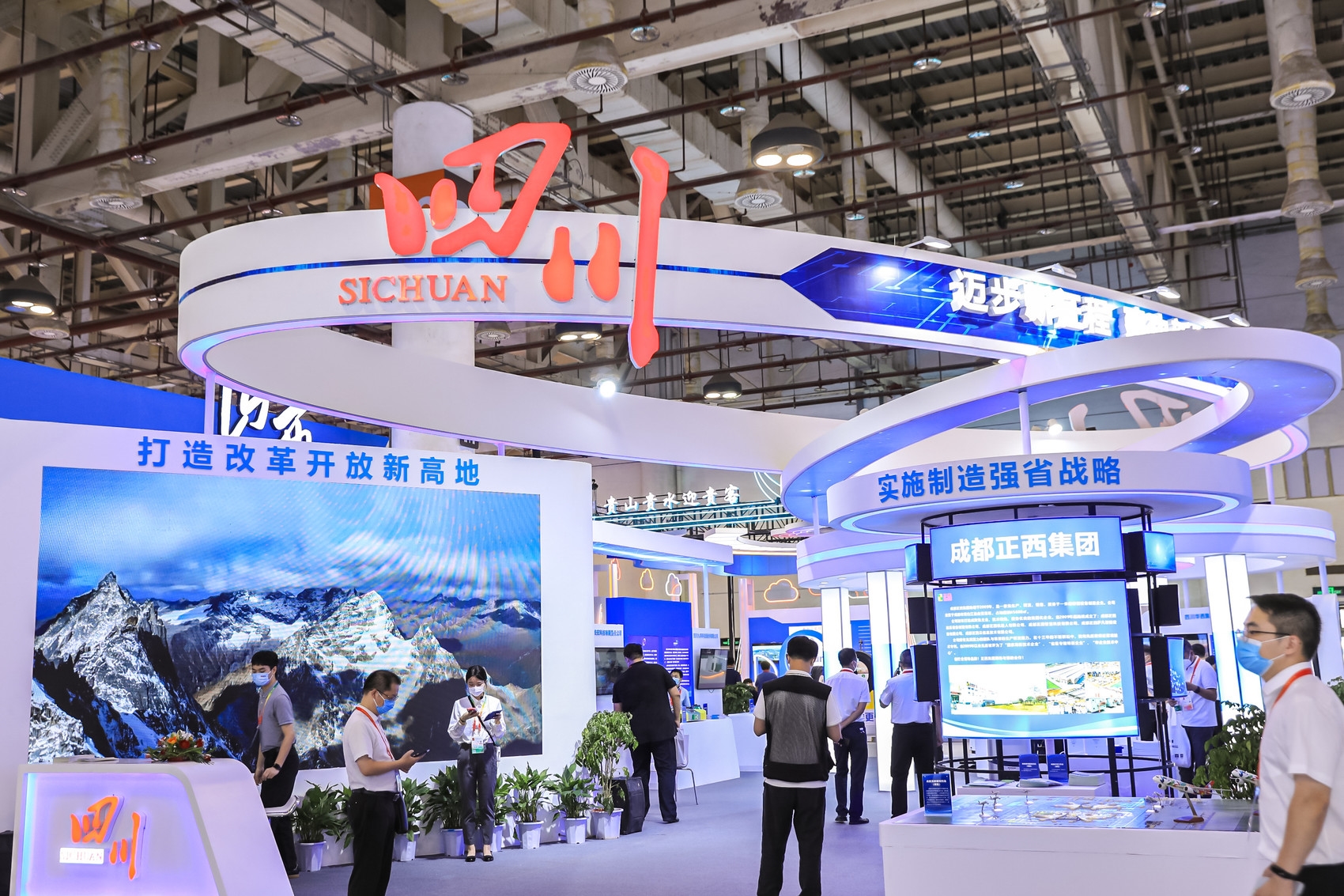 四川馆以“迈步新征程,建功新时代”为主题,设置“打造改革开放新高地”和“实施制造强省战略”两大展区,重点展示四川对外开放和高新技术产业体系发展成果。成都正西液压设备制造有限公司、成都铁安科技有限责任公司、四川九阵科技股份有限公司、四川酷哞哞科技有限公司等科技企业参展参会。