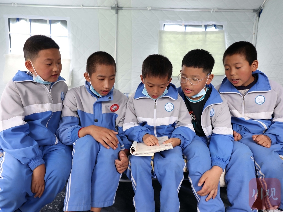 “很久以前,北山有个老头名字叫愚公。他家门前有两座大山……”帐篷内,初二学生付君玥正在给5岁的妹妹读书,“我家在共和村,因道路坍塌我和母亲、妹妹都在安置点生活,第一次经历地震,还是有点怕。但在安置点,能吃得饱睡得好穿得暖,还有同学、老师们的陪伴,胃暖心里更暖。”