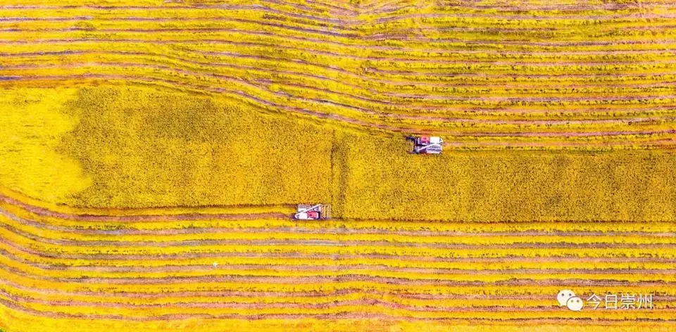崇州是成都粮油主产区之一,现阶段,10万亩粮食高产稳产高效综合示范基地呈现一派壮丽的金黄色。耘丰农机专业合作社的4台收割机在基地里忙碌着,进入水稻收割季,每天总收割120亩至150亩。