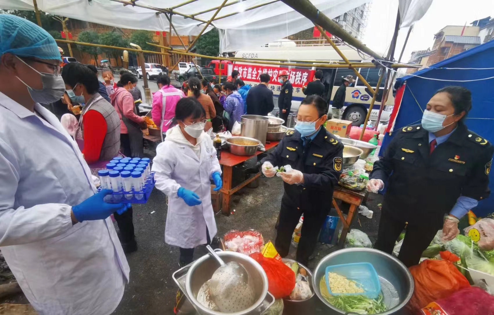 “9·5”泸定地震发生后,甘孜州市场监管局深入受灾一线,全力守护灾区食品安全。泸定、海螺沟等地市场监管部门结合自身职责,对灾区学校、医院、救援人员驻地、集中安置点、临时供餐场所等重点场所以及饮用水生产企业水源监测、婴幼儿配方乳粉质量管控等重点环节进行全面排查,确保灾区群众饮食安全。根据受灾安置群众供餐情况,派出食品快检车,对蔬菜、畜禽肉类等进行快速检测,同时,及时发布食品安全权威信息,加强受灾群众食品安全提示、临时供餐点食品安全警示。