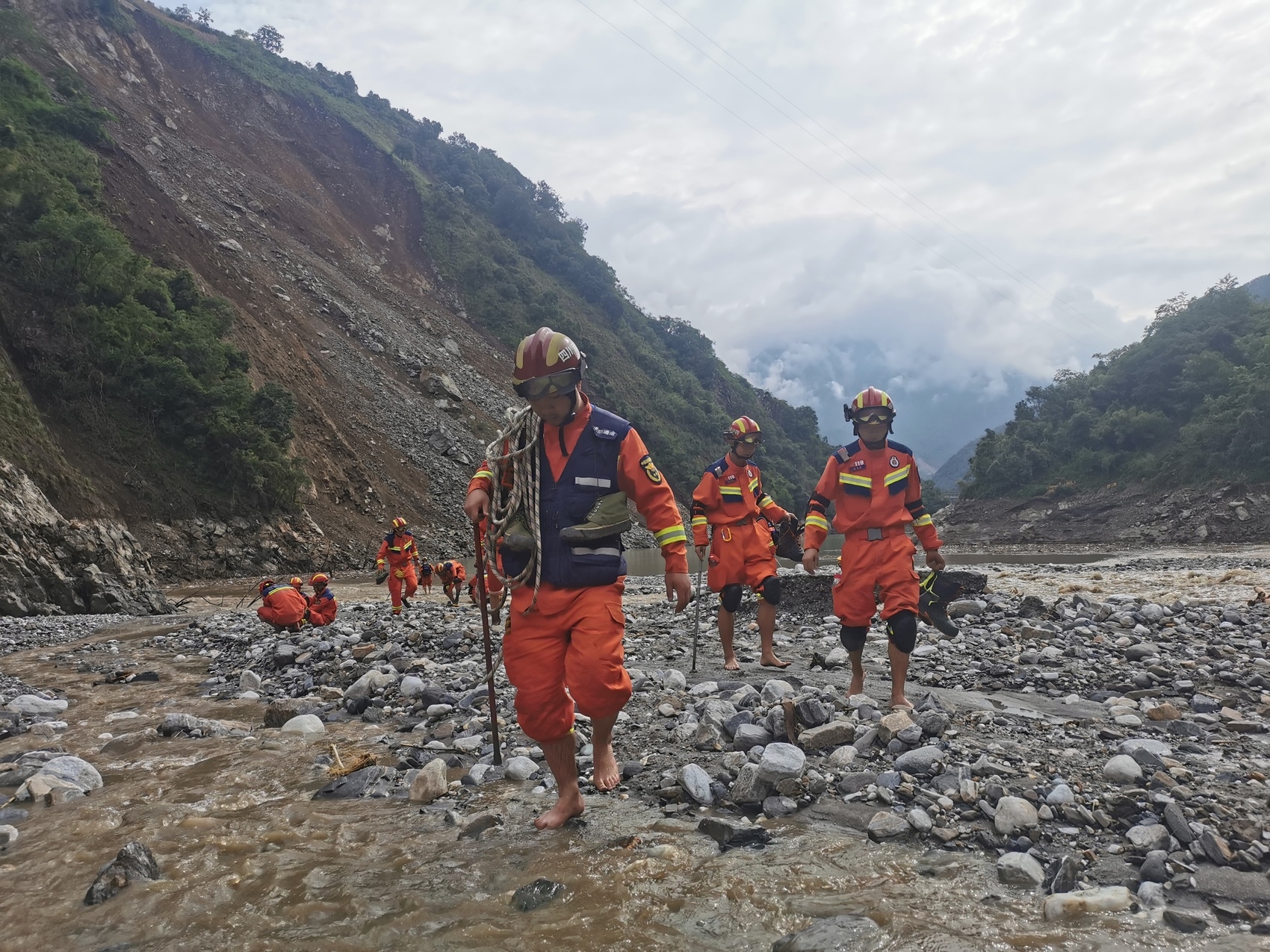 当日17时23分,乐山市消防救援支队重型地震救援队到达石棉县新民乡前方指挥部。还未来得及休整,便接到前线指挥部命令:组建突击队伍徒步突入道路、通信完全中断的王岗坪乡幸福村开展搜救排查。