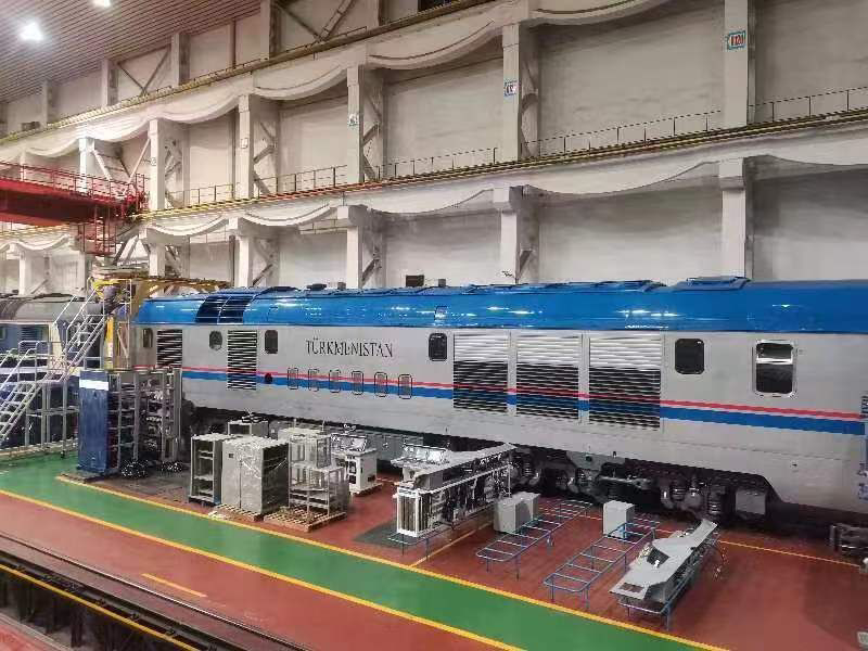 中车资阳机车公司出口土库曼斯坦机车总装完成待发运。商务厅供图