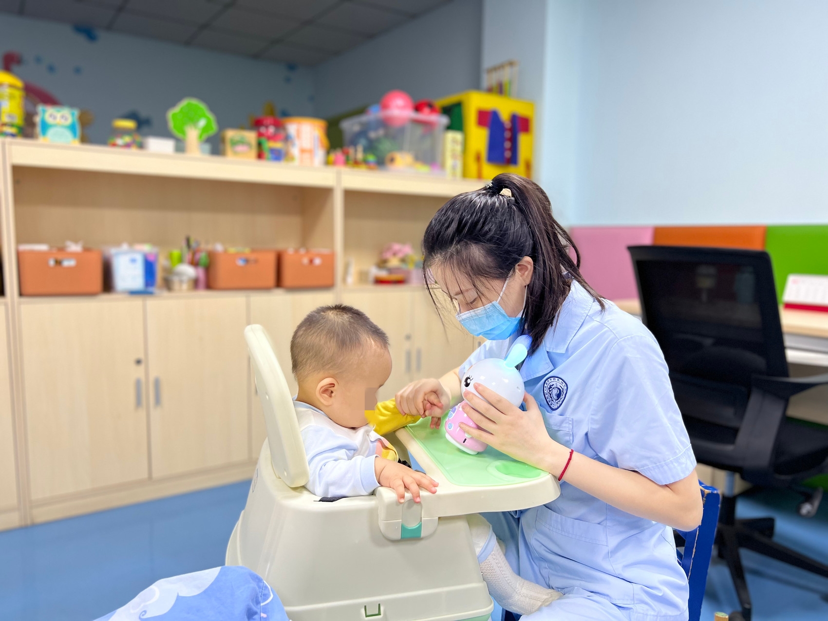除了线上指导之外,治疗师也不忘悉心照料仍在儿童康复中心治疗的孩子们。成都市中西医结合医院(市一医院)供图