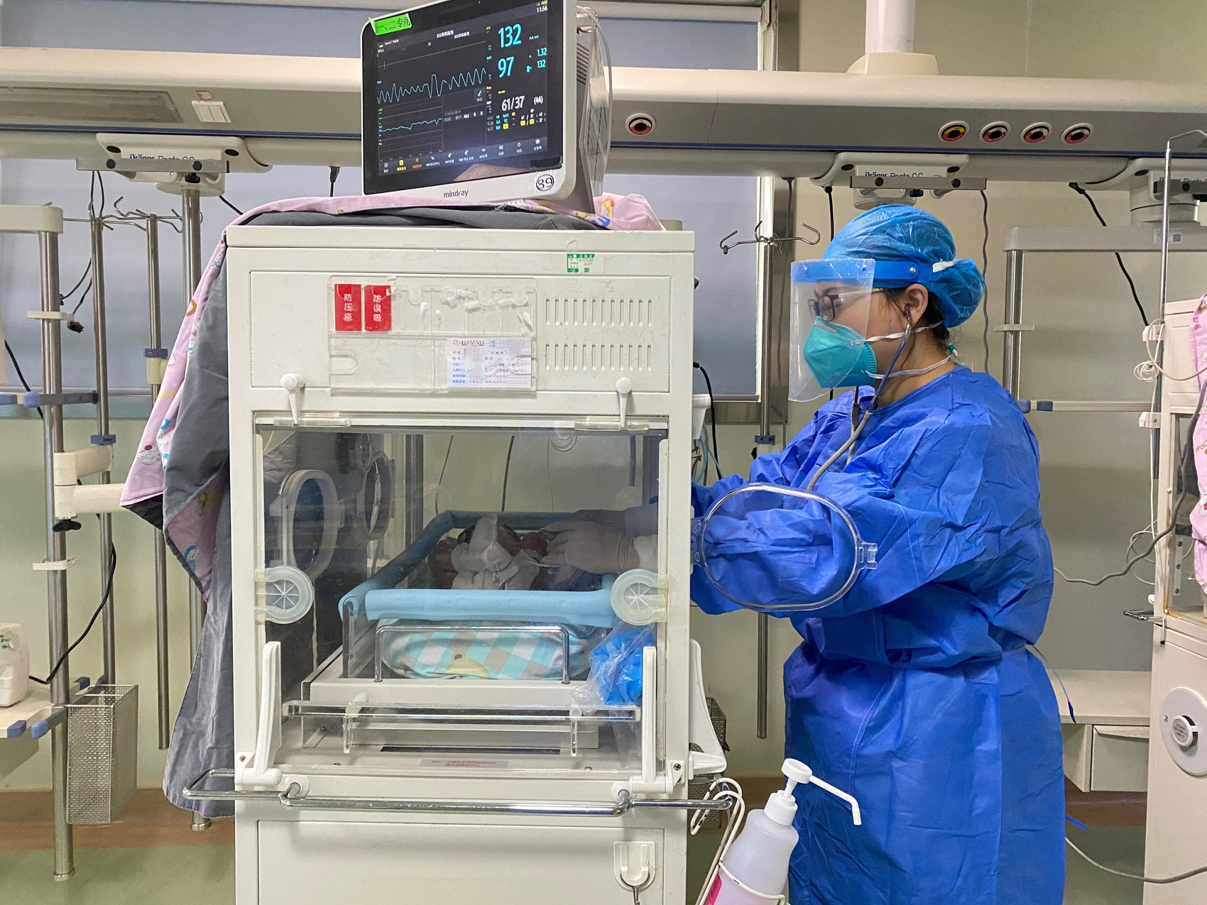 新生儿科医护人员正在照顾宝宝。四川省妇幼保健院供图