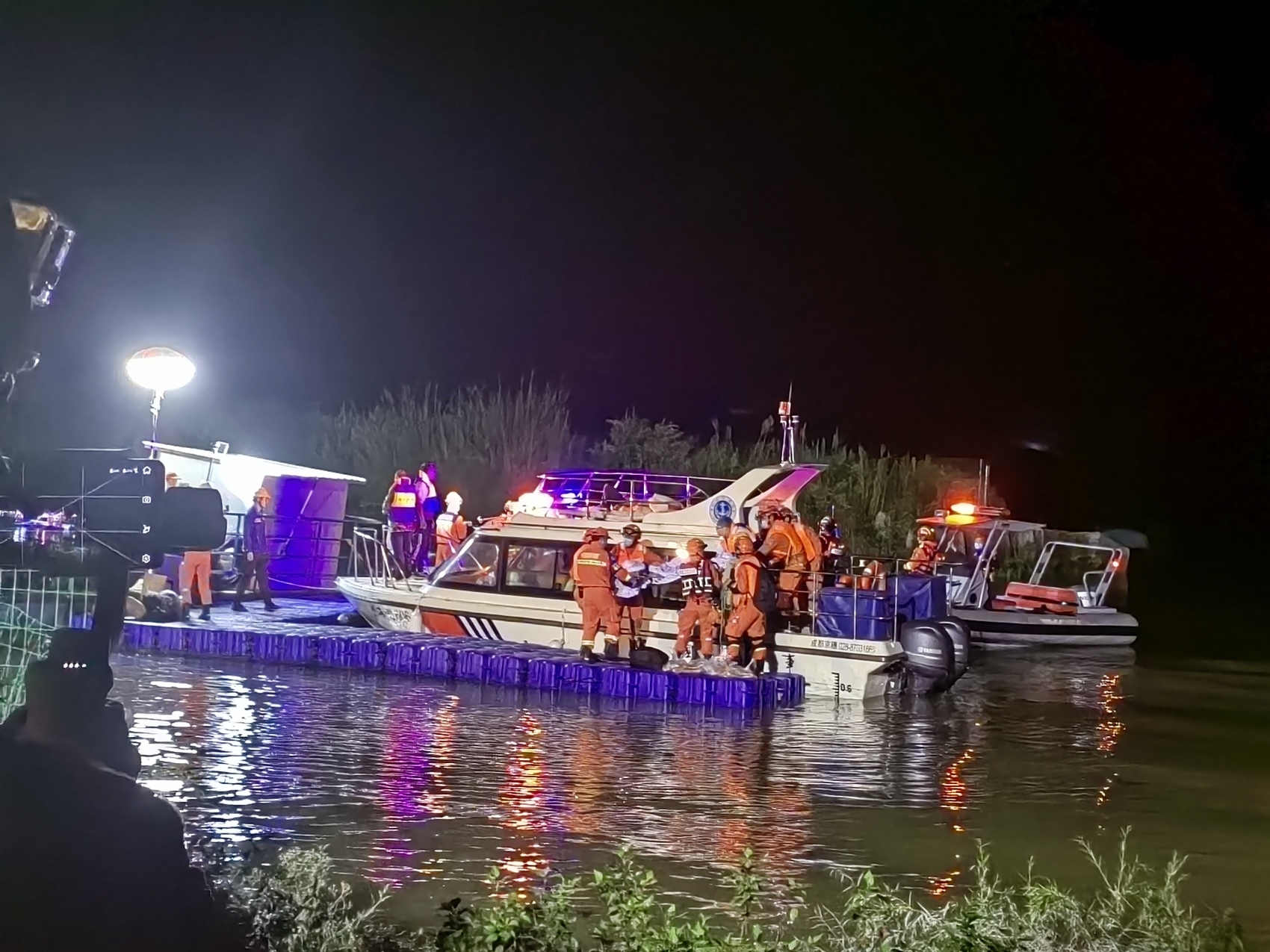 他带着两名工作人员当即启程,前往汉源库区调运海巡艇和船员,又紧急赶往石棉。当晚22时许,当赶到道路抢通队伍遇阻的龙头石水库临时码头处时,已有不少救援人员在此集结。