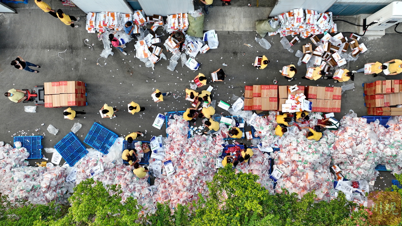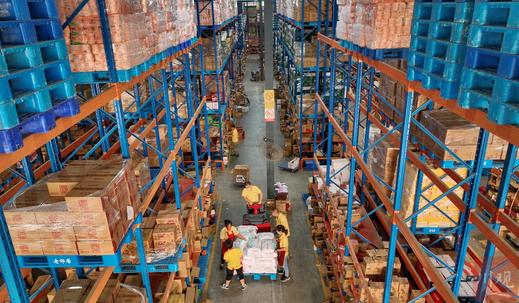 9月12日下午,位于成都市温江区温泉大道三段的老邻居配送中心一片忙碌景象,有的工人架着前移式叉车在不同的货架间来回穿梭,有的工人开着搬运车把一件件货品装上车,一辆辆装满了各种生活用品的运输车有序发出,记者用镜头记录了这里的繁忙景象。