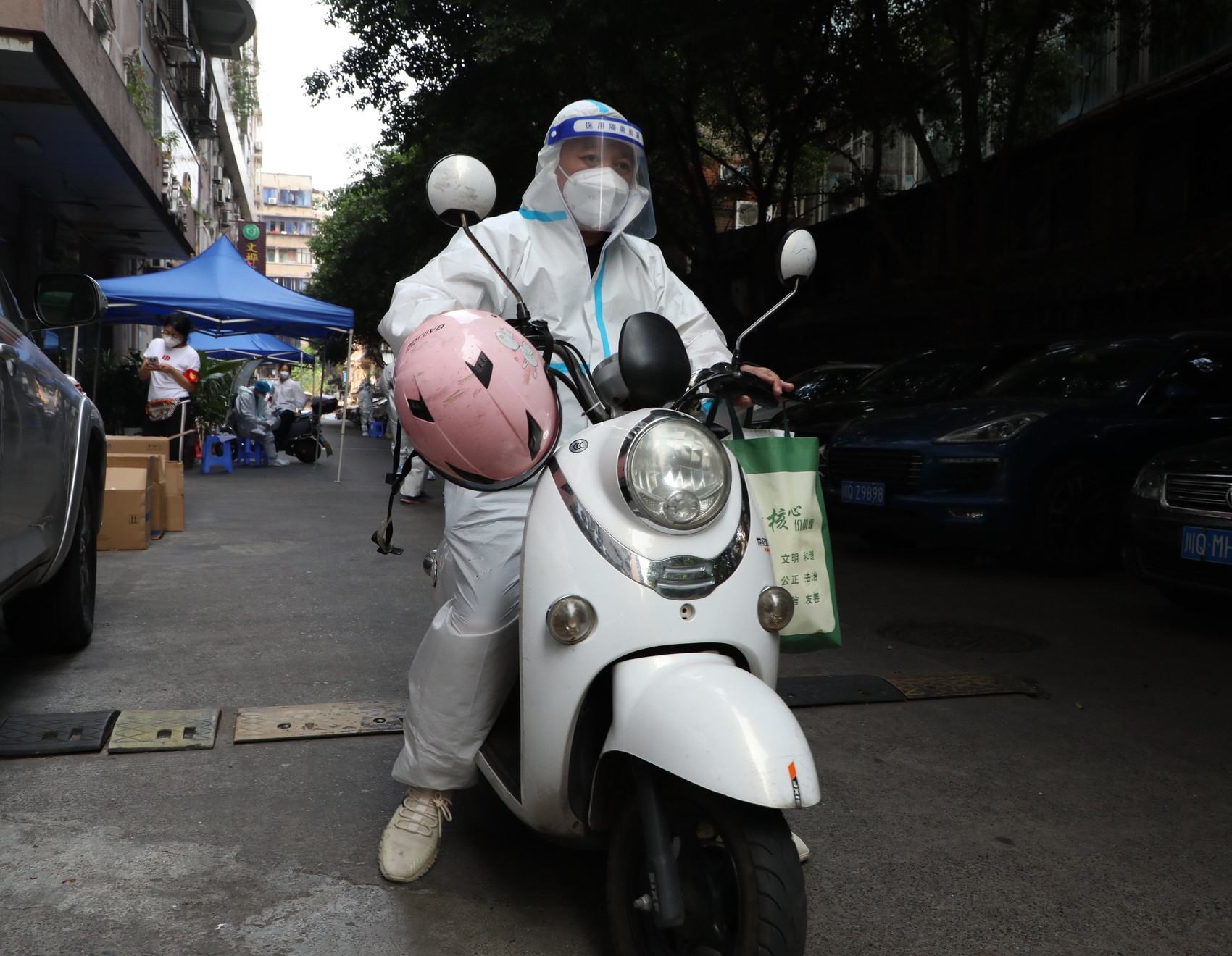 同时,志愿者组成的物资保障组也在各个网格间来回奔走,为医务人员送去需要的物资、交回来采样样本,样本通过整理、收集、转运后再交付检测。